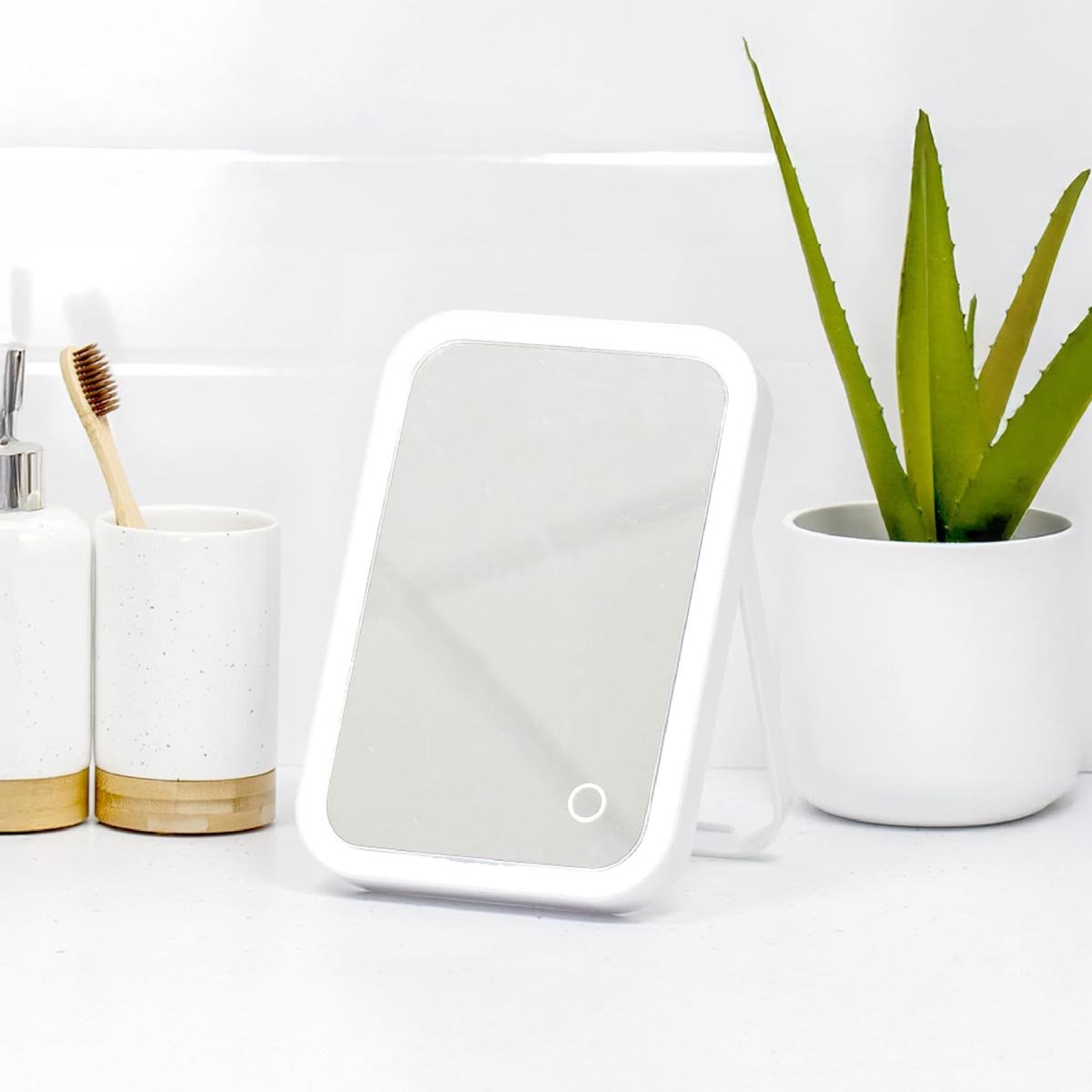 Zrcadlo, ve kterém na sebe uvidíte i ve tmě? LED kosmetické zrcátko Wenko s integrovanými LED diodami má mimořádně vysokou svítivost. Při nanášení makeupu nebo trhání obočí je dokonalým pomocníkem. Dotyková funkce umožňuje zrcátko snadno zapnout a vypnout. Je vybavené stmívačem pro pohodlné přepínání úrovně jasu. Životnost LED diod napájených z baterií je extrémně dlouhá. Zrcátko je díky stojanu stabilní a snadno ho sklopením přizpůsobíte svým potřebám. Díky plochému designu ho snadno vezmete s sebou na cesty.