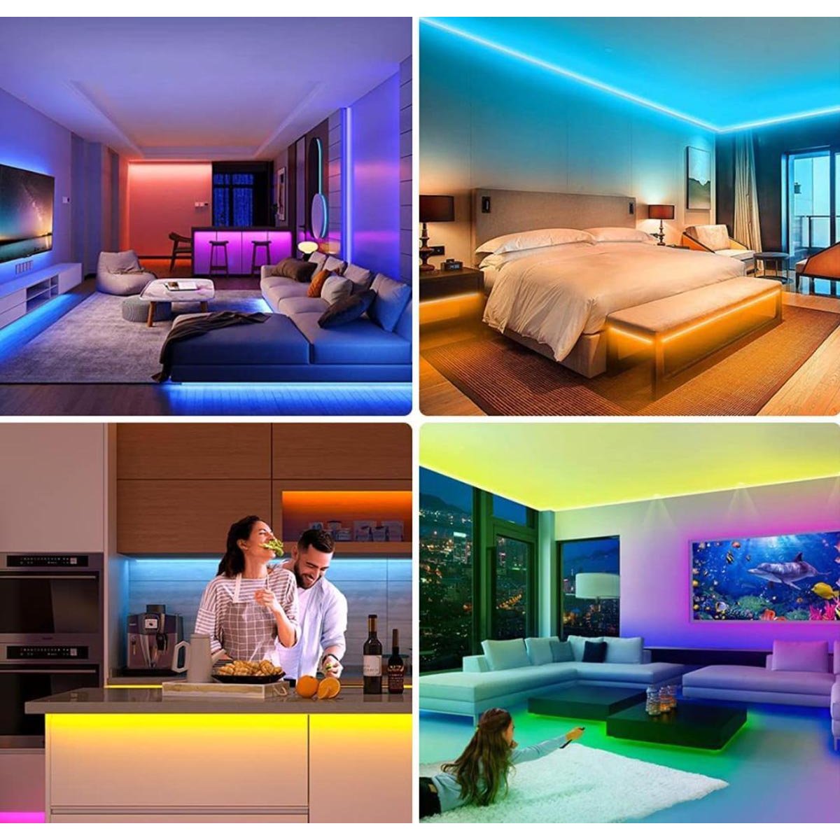 LED pásek se 150 SMD LED – RGB nabízí moderní atraktivní doplněk k osvětlení v interiéru. Podsvícení kuchyňské linky, baru i schodiště v barvě a intenzitě podle vaší nálady je s dálkovým ovládáním snadné. Lze nastavit 15 různých barev. LED pásky jsou flexibilní a lze je upevnit na různé povrchy a zkrátit podle potřeby.