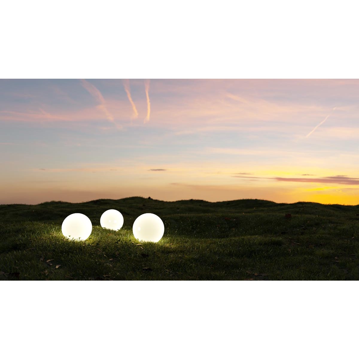 Zahradní svítící koule se zápichem a integrovaným solárním panelem. Dokonalá světelná dekorace na váš trávník. Zahradní osvětlení koule se hodí i do květináče na balkoně či terase. Přes den se sluncem nabíjí, v noci svítí.