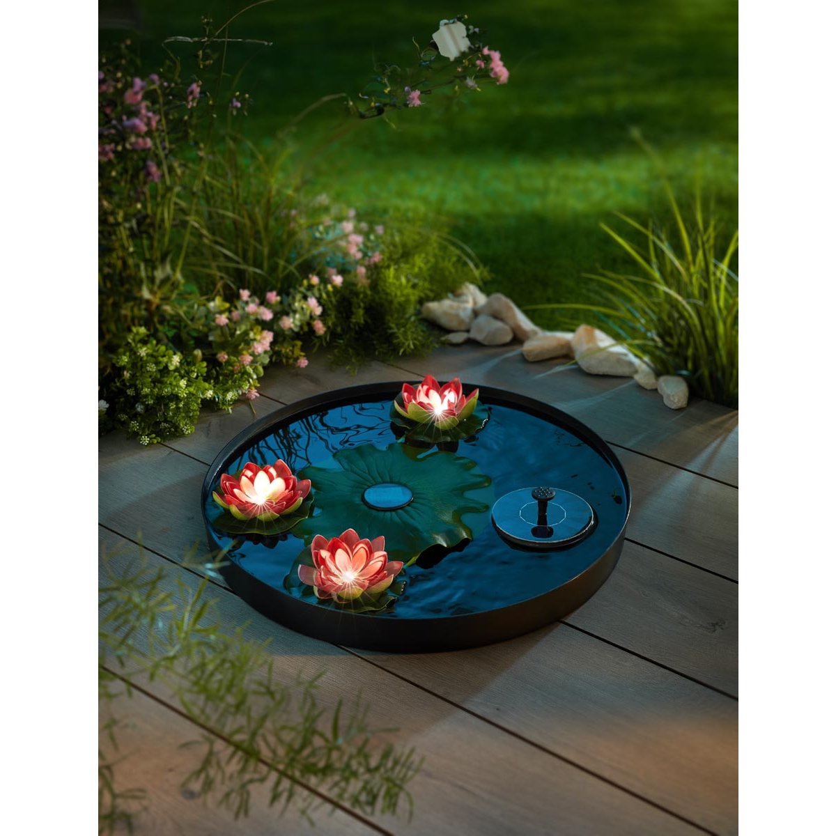 Efektní solární dekorace ve tvaru leknínu rozzáří každé jezírko i zahradní nádobu. Přes den se nabíjí sluneční energií, po setmění vytváří působivé světelné efekty ve studeně bílé barvě.