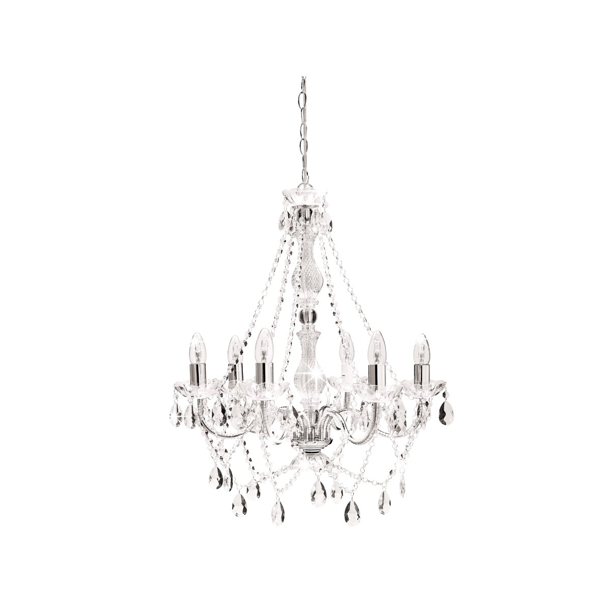 Vyroben z kovu s kapkami a řetízky z transparentního akrylu.