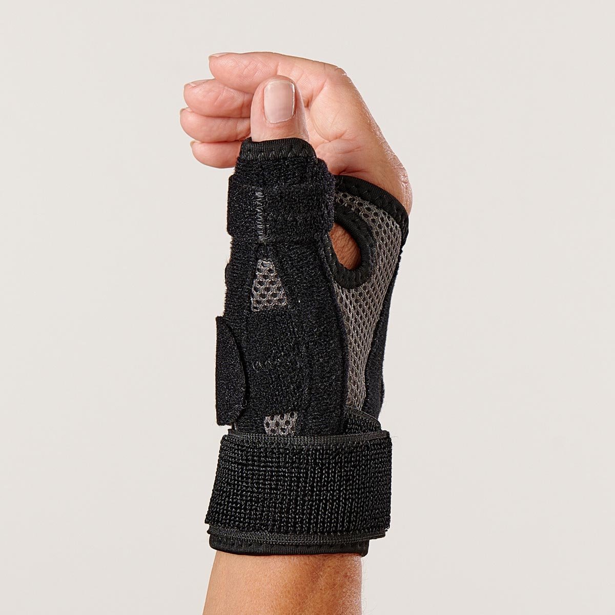 Měkká ortéza s integrovanou dlahou znehybňuje palec a udržuje zápěstí pohyblivé. Se 3 suchými zipy, lze nosit na levé i pravé straně. Stabilizace + úleva od bolestivých palců. Zápěstí zůstává pohyblivé. Nositelný vlevo + vpravo.Doplňkové parametry