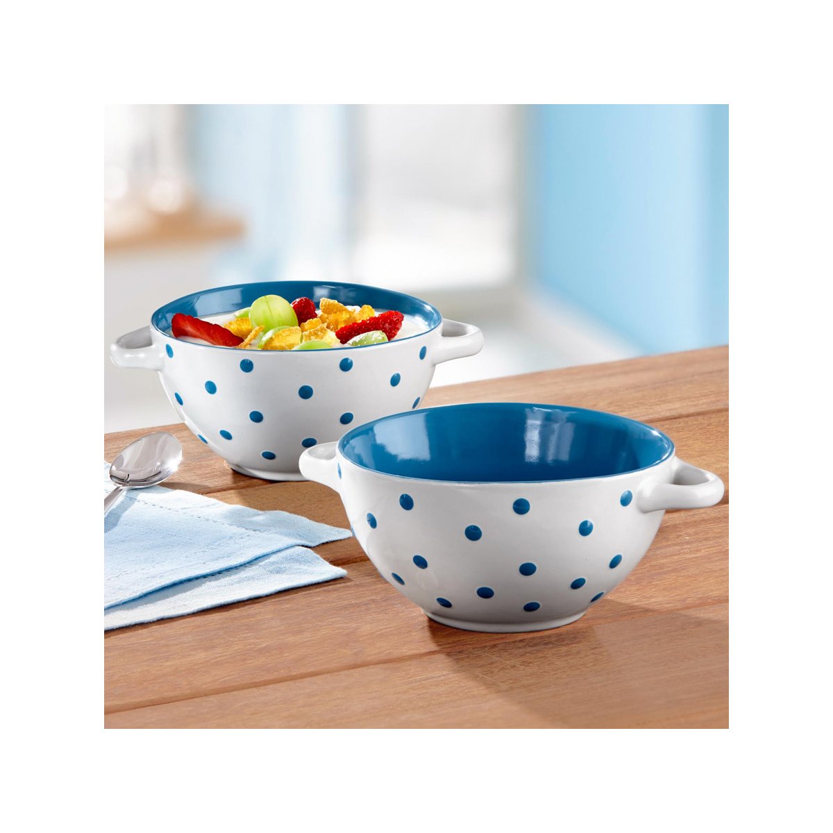 Pro malé pochoutky jsou tyto misky přesně to pravé. Veselý puntíkovaný vzor, dvě malá praktická ouška – a bude vám chutnat ještě víc. Vhodné do myčky nádobí.