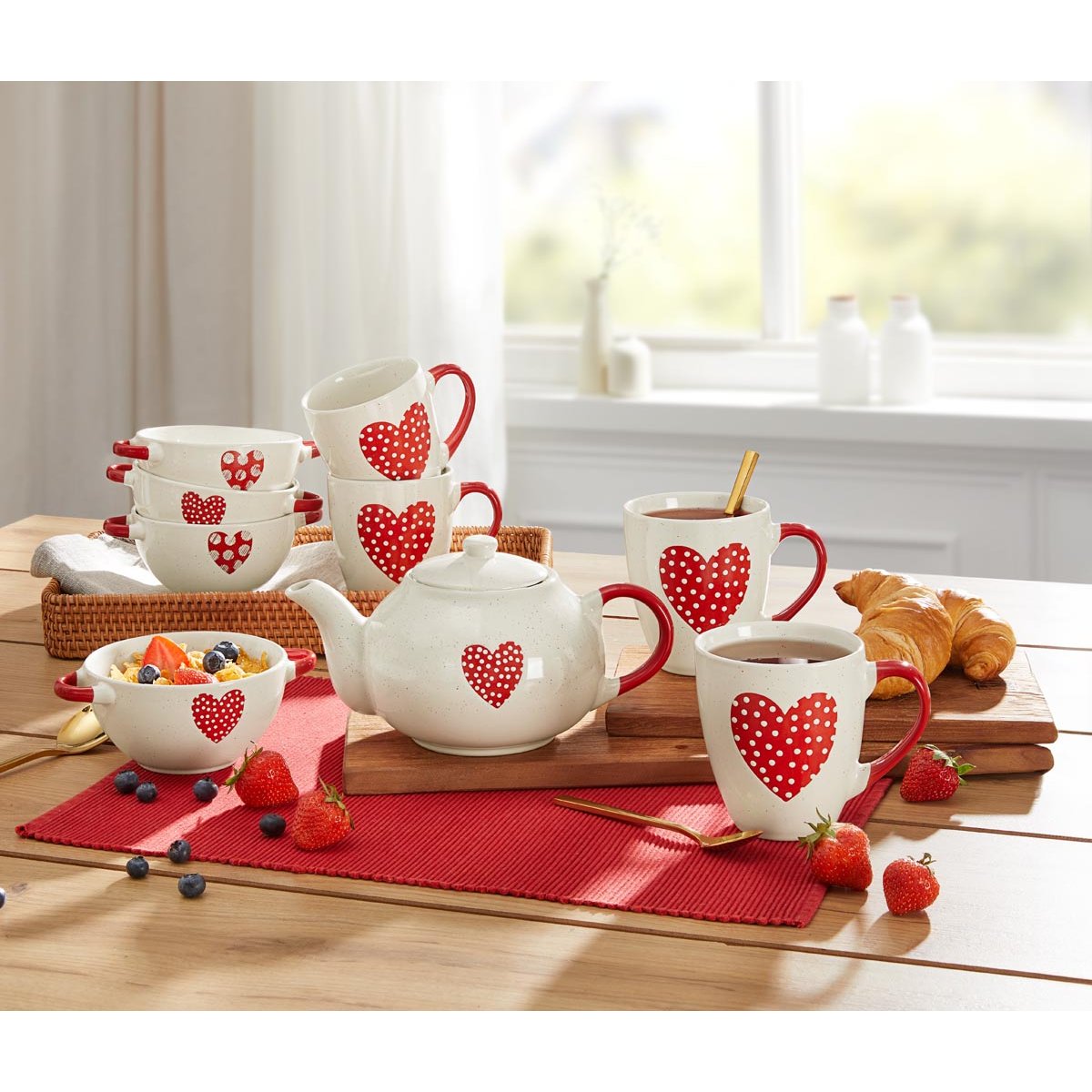 Tato sada misek spojuje funkčnost a elegantní nádobí pro každodenní použití i slavnostní chvíle. Jemný motiv srdce dodává stolování hřejivý a osobitý vzhled, zatímco nadčasový tvar se hodí ke každému stylu. Misky jsou ideální pro servírování snídaní, dezertů i drobných pochutin a stanou se krásným doplňkem při rodinném stolování.