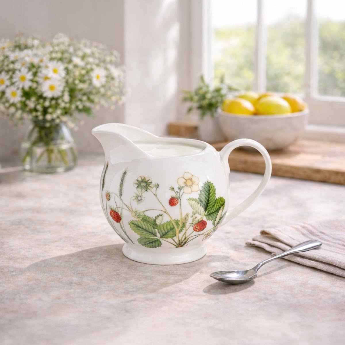 Stylová konvička na mléko v elegantním venkovském designu krásně doplní váš čajový i kávový servis. Jemný motiv lučních květů a lesních jahod působí svěže, romanticky a harmonicky ladí s ostatním porcelánovým nádobím ze stejné kolekce.