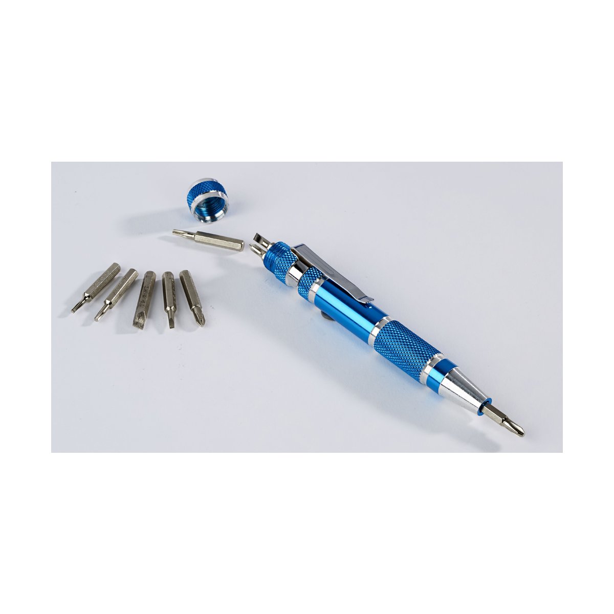 Vypadá to, že toto pero, včetně klipu, je geniální nástroj. Do špičky lze díky magnetu uchytit 9 různých nástavců.