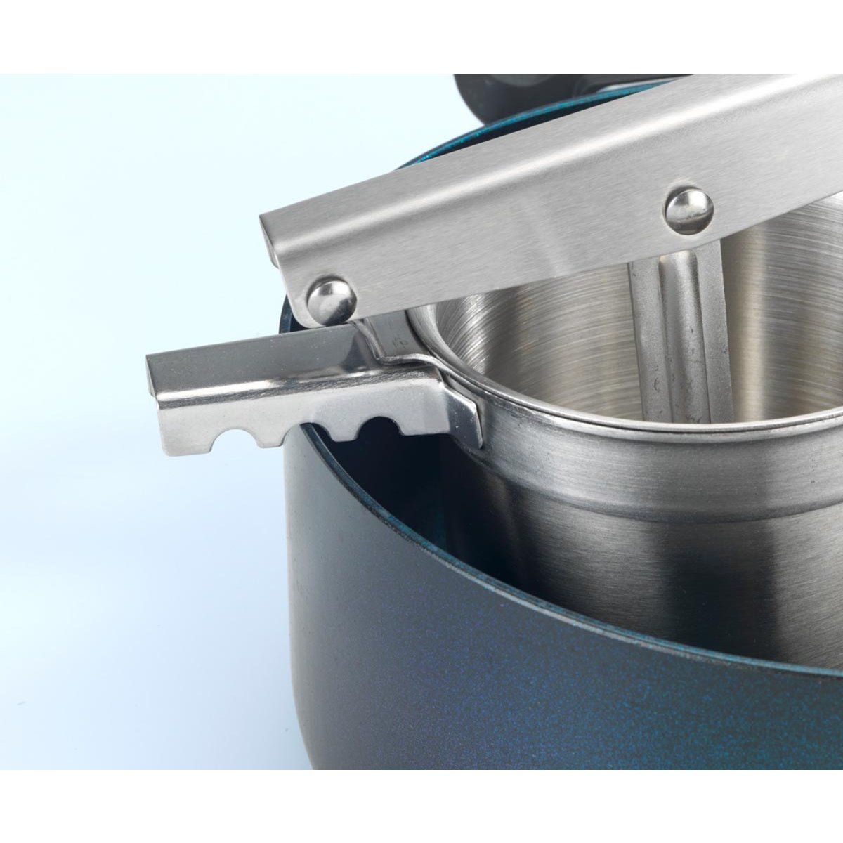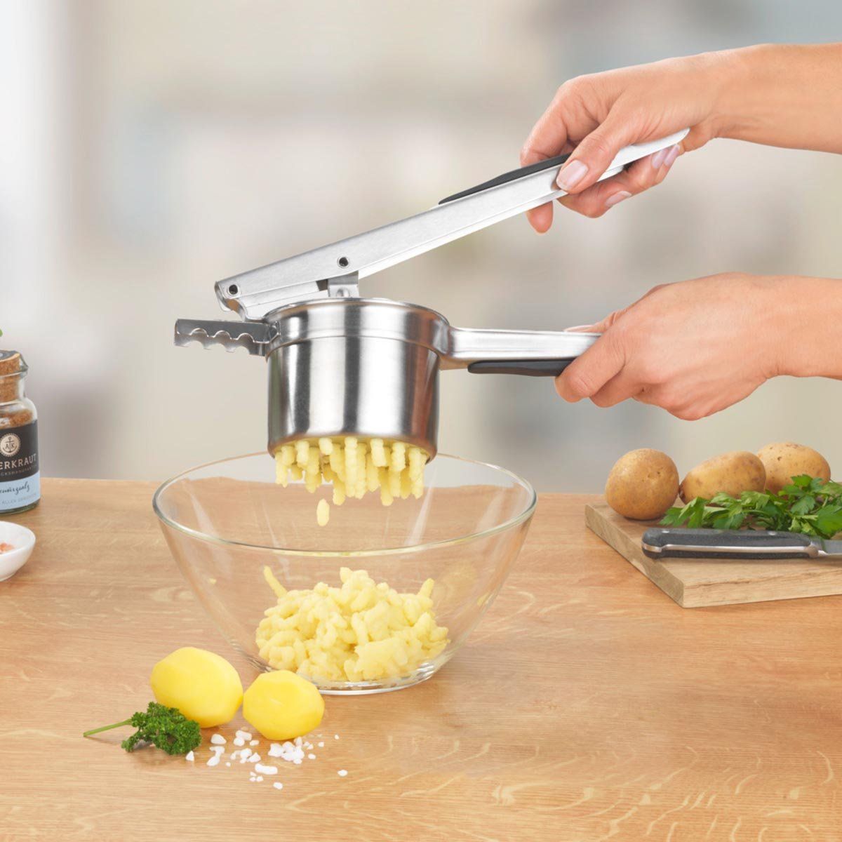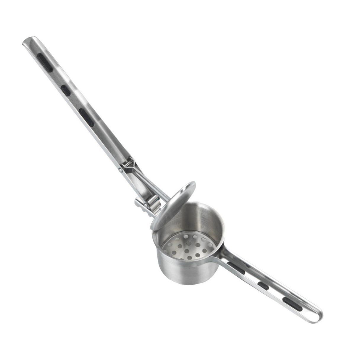 Toto univerzální mačkadlo je ideální pro přípravu bramborové kaše, noků, těstovinových těst nebo zeleninových pyré. Stačí vložit uvařené suroviny a stlačením rukojeti dosáhnete požadované konzistence – od jemné až po hrubší strukturu.