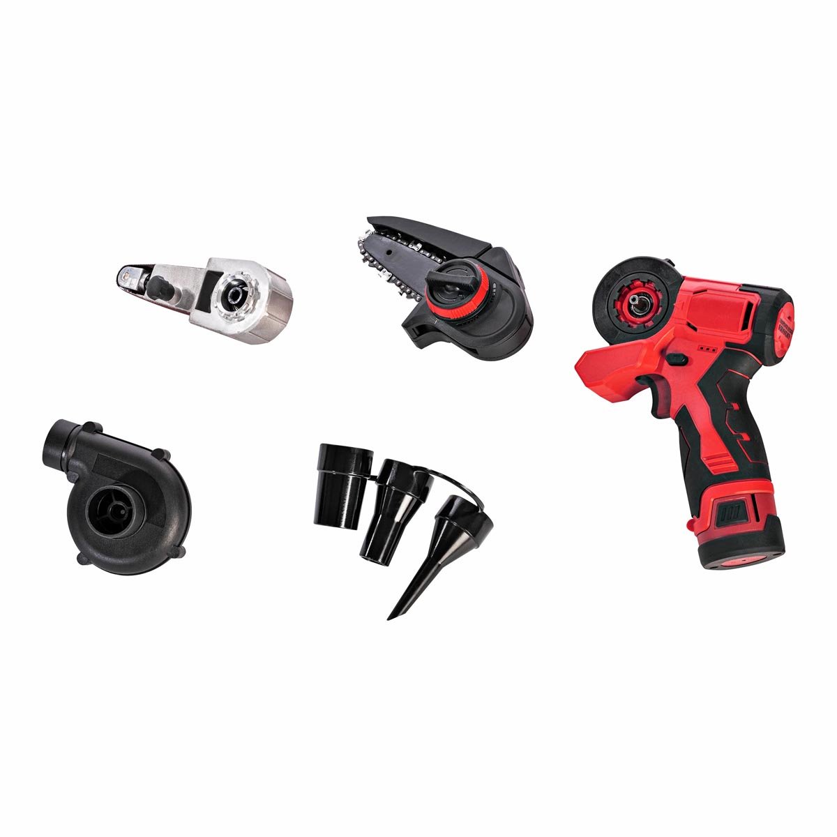 Je nepostradatelným pomocníkem pro vaši zahradu a hobby projekty. S jediným nástrojem můžete řezat dřevo, brousit povrchy a odfouknout prach, piliny či listí.
