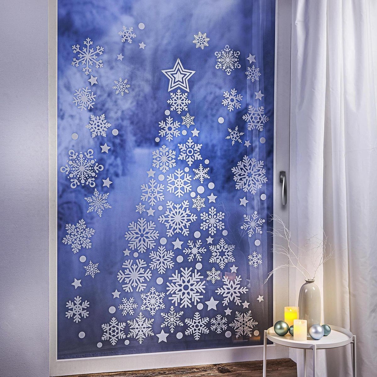 Takový vánoční stromek se hned tak nevidí. Vytvoříte jej velmi snadno ze 4 samolepicích fólií, které tvoří sněhové vločky s hvězdami a tečkami. Krásně ozdobí okna, prosklené dveře, zrcadlo v předsíni a další hladké povrchy.