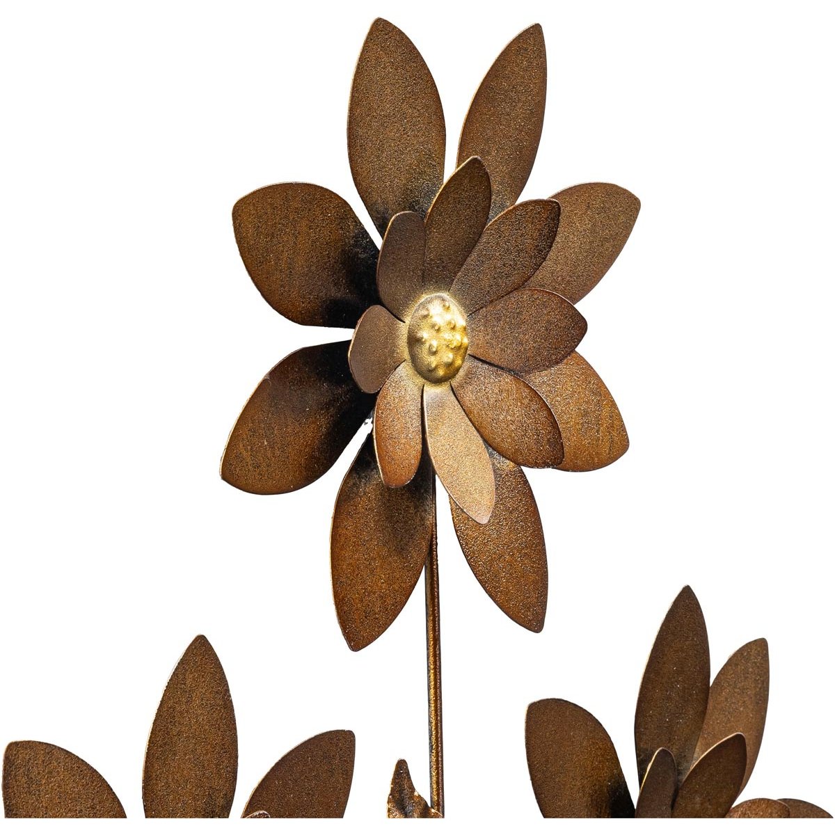 S lesklými zlatými akcenty a bronzově hnědou povrchovou úpravou s jemným třpytem pestíků je tato kytice skvělým doplňkem pro stěny balkonů, teras, garáží.