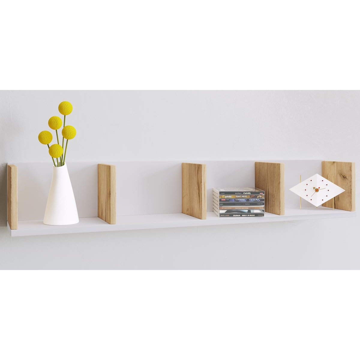 Nástěnná police VCM „Honsa“. - Pro sbírané poklady, jako jsou CD, DVD, videa, knihy a mnoho dalšího. - Snadná montáž a manipulace. - Se 3 variabilními policemi. - Replika dřevěné konstrukce. - V demontovaném stavu včetně veškerého upevňovacího materiálu a montážního návodu. - Rozměry: V. 15 x Š. 97 x H. 17 cmDoplňkové parametry