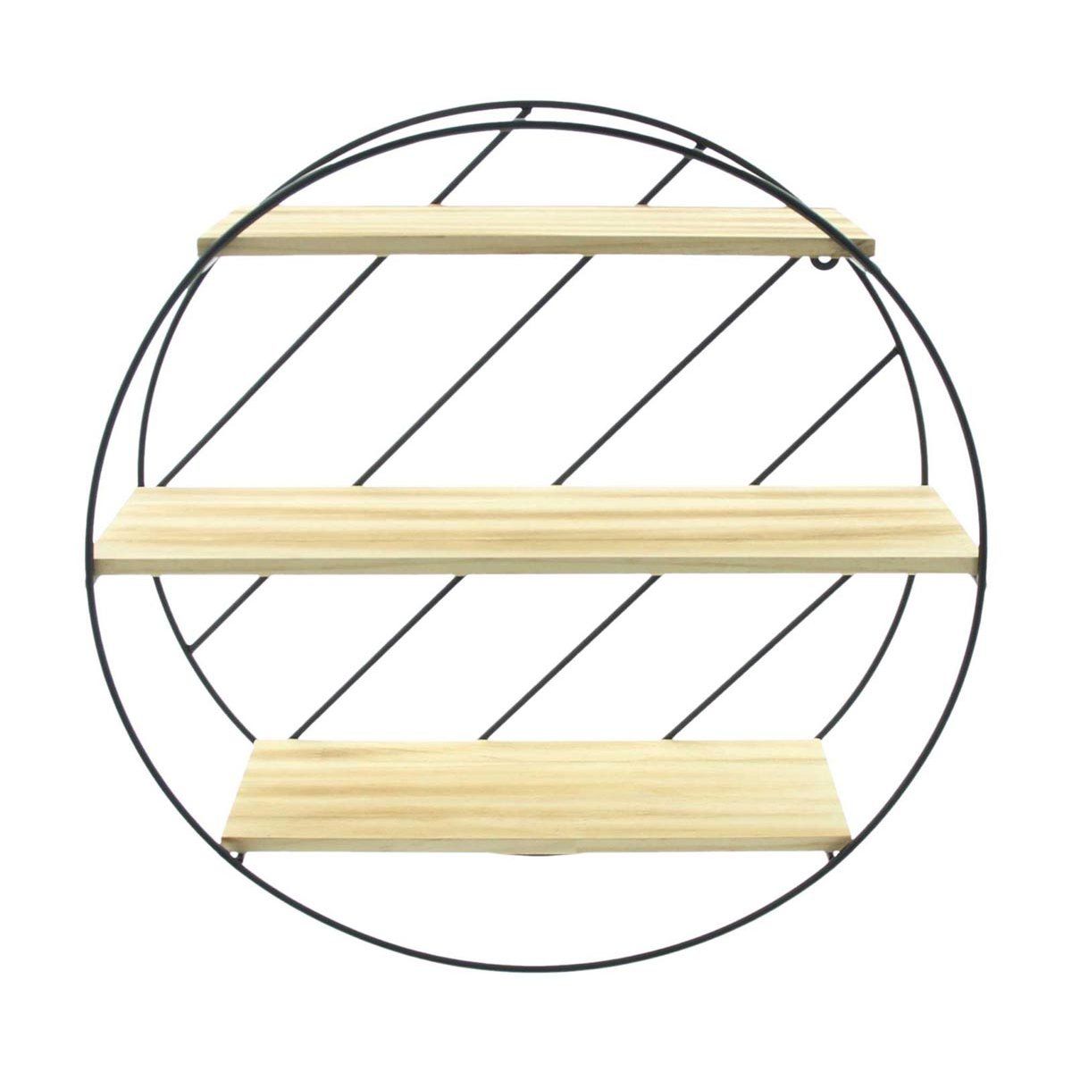 Objevte elegantní nástěnnou dekoraci Circle, která propojuje funkčnost a stylový design. Kulatý rám z matně černě lakovaného kovu v kombinaci s dřevěnými policemi dodá vašemu interiéru moderní a zároveň útulný vzhled.