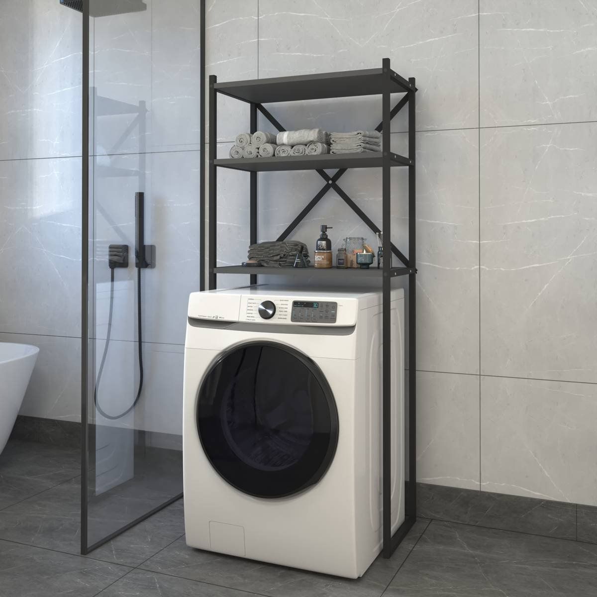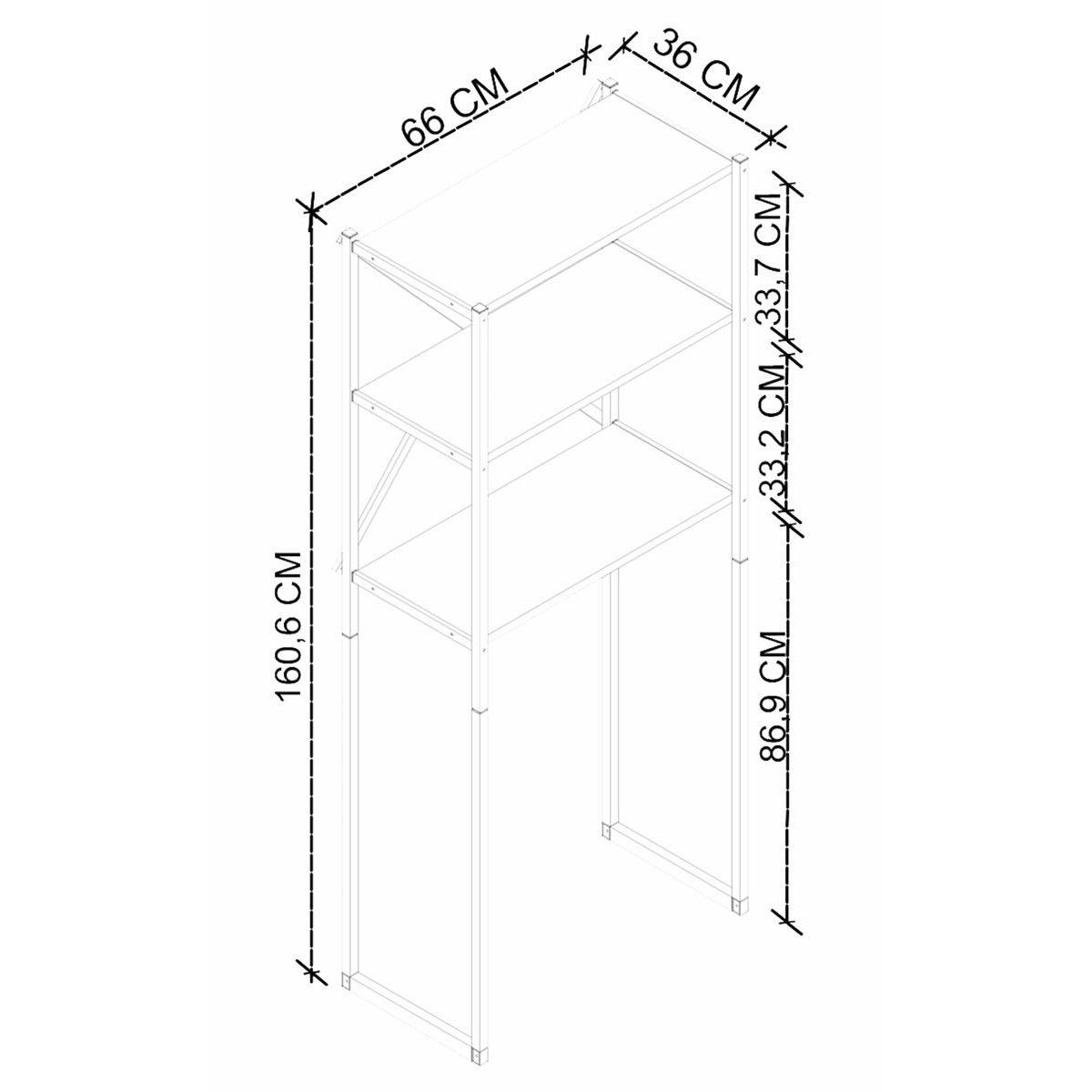Tento víceúčelový policový regál nad pračku nabízí díky třem prostorným policím dostatek úložného prostoru pro ručníky, čisticí prostředky i další koupelnové potřeby. Díky nadčasovému designu se skvěle hodí jako praktický nábytek do koupelny, který efektivně využije prostor nad pračkou a pomůže udržet pořádek i v menších místnostech.