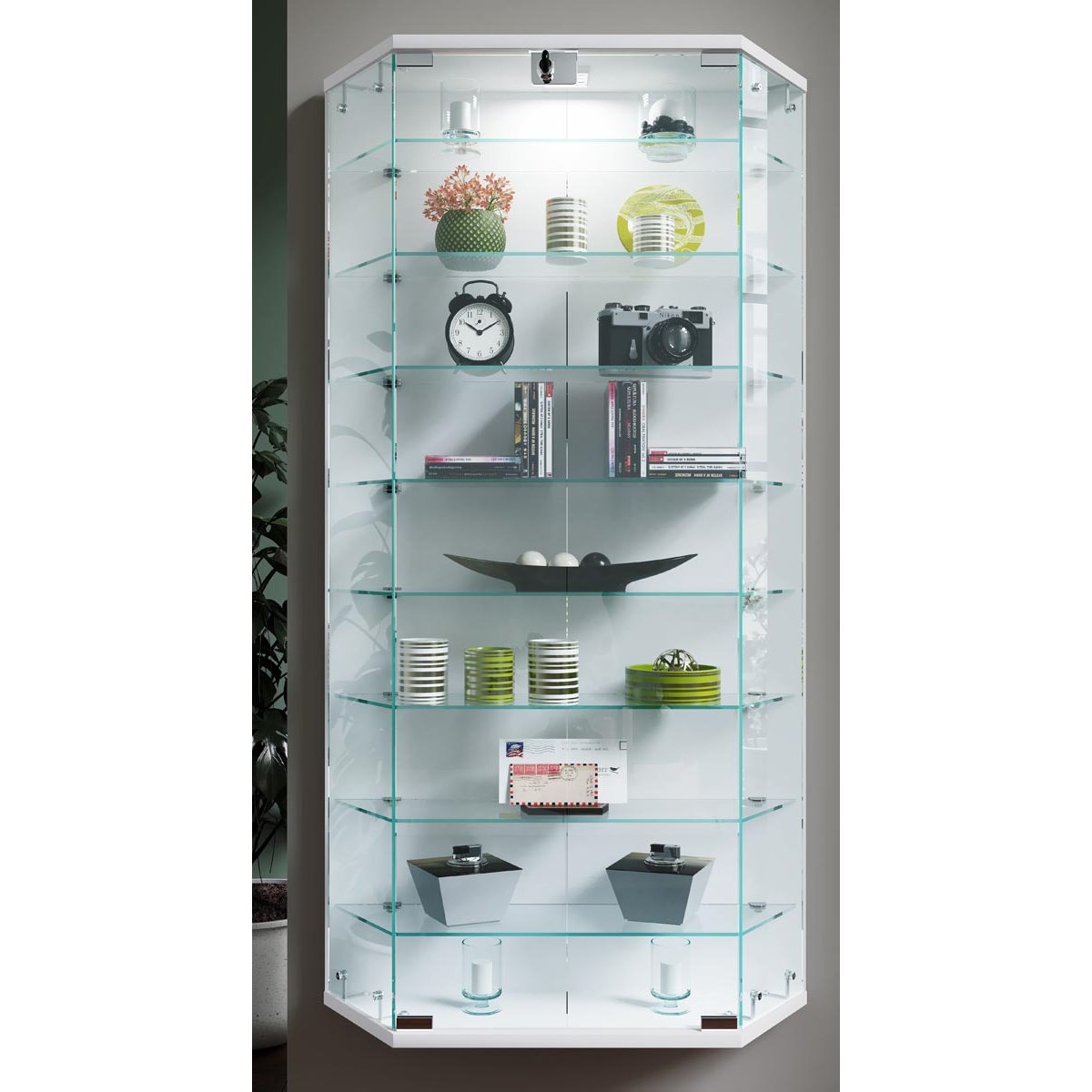 Hlavní vlastnosti: - 8 skleněných polic - Vitrína se dvěma otočnými dvířky - Uzamykatelná dvěma klíči - Volitelné osvětlení - Rozměry: V 114 x Š 83 x H 17 cm Vitrína má lichoběžníkový tvar, což jí dodává osobitý vzhled. Nastavitelné skleněné police lze kdykoli přemístit dle individuálních potřeb. Dvoje plynule se otevírající dveře doplňují tento krásný kus nábytku. Designér vytvořil estetiku, díky které je skleněná vitrína skutečným poutavým prvkem téměř v každé místnosti.Doplňkové parametry