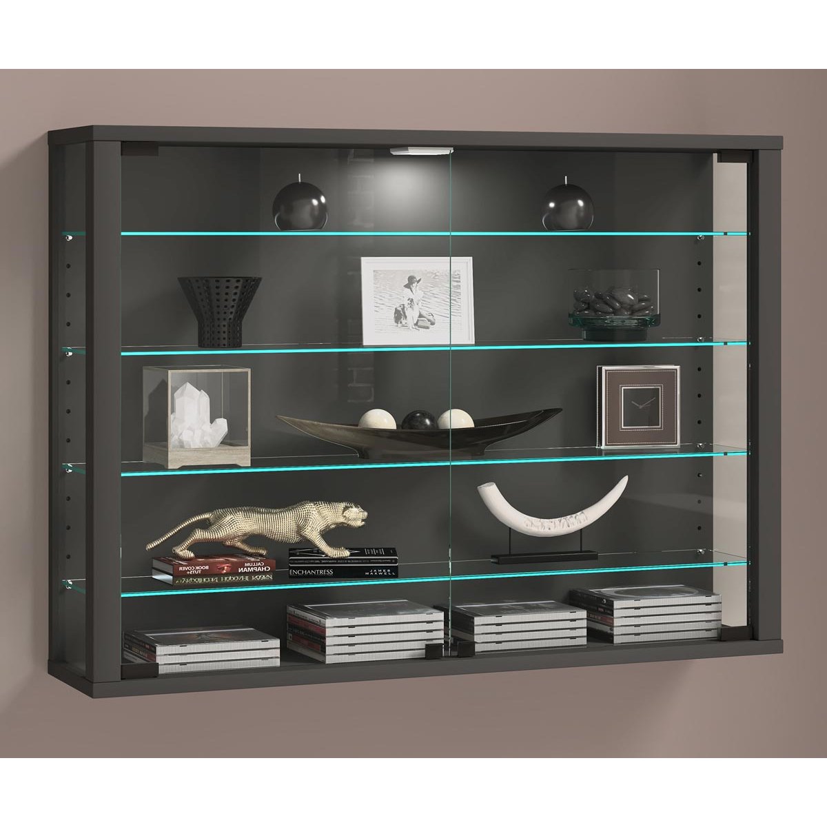 Stylová prosklená vitrína VCM Vitrosa L promění každou stěnu v elegantní výstavní prostor. Tato moderní nástěnná vitrína nabízí dostatek místa pro dekorace, sběratelské předměty i skleněné doplňky – ideální volba pro všechny, kteří chtějí mít své poklady přehledně vystavené.