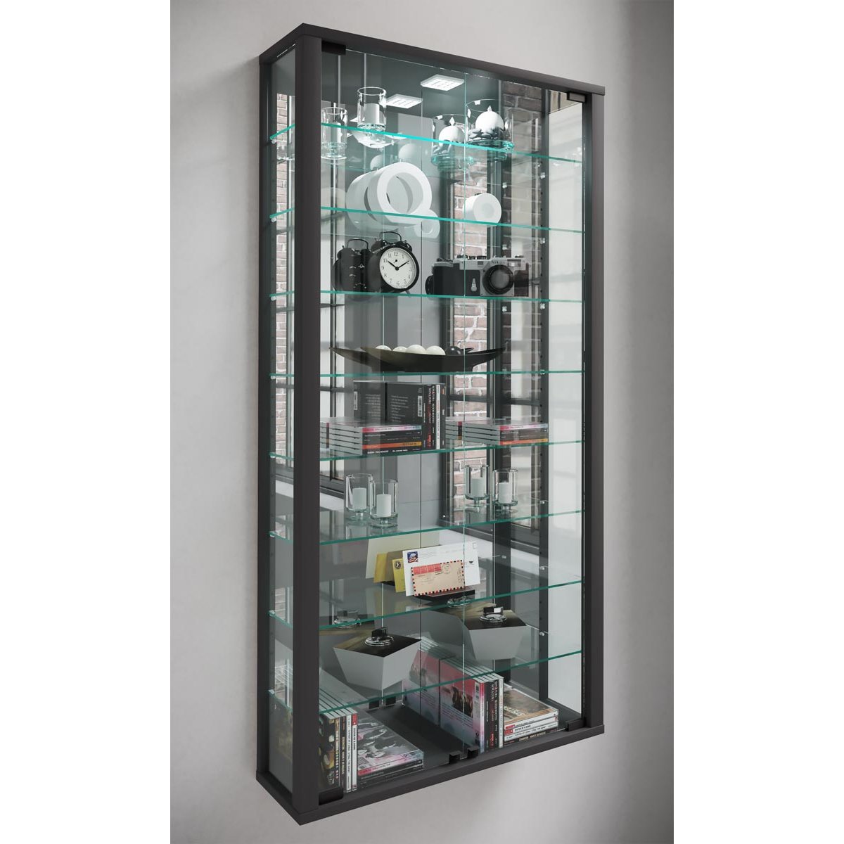 Nástěnná vitrína Vitrosa Maxi se zrcadlem včetně LED osvětlení, černá