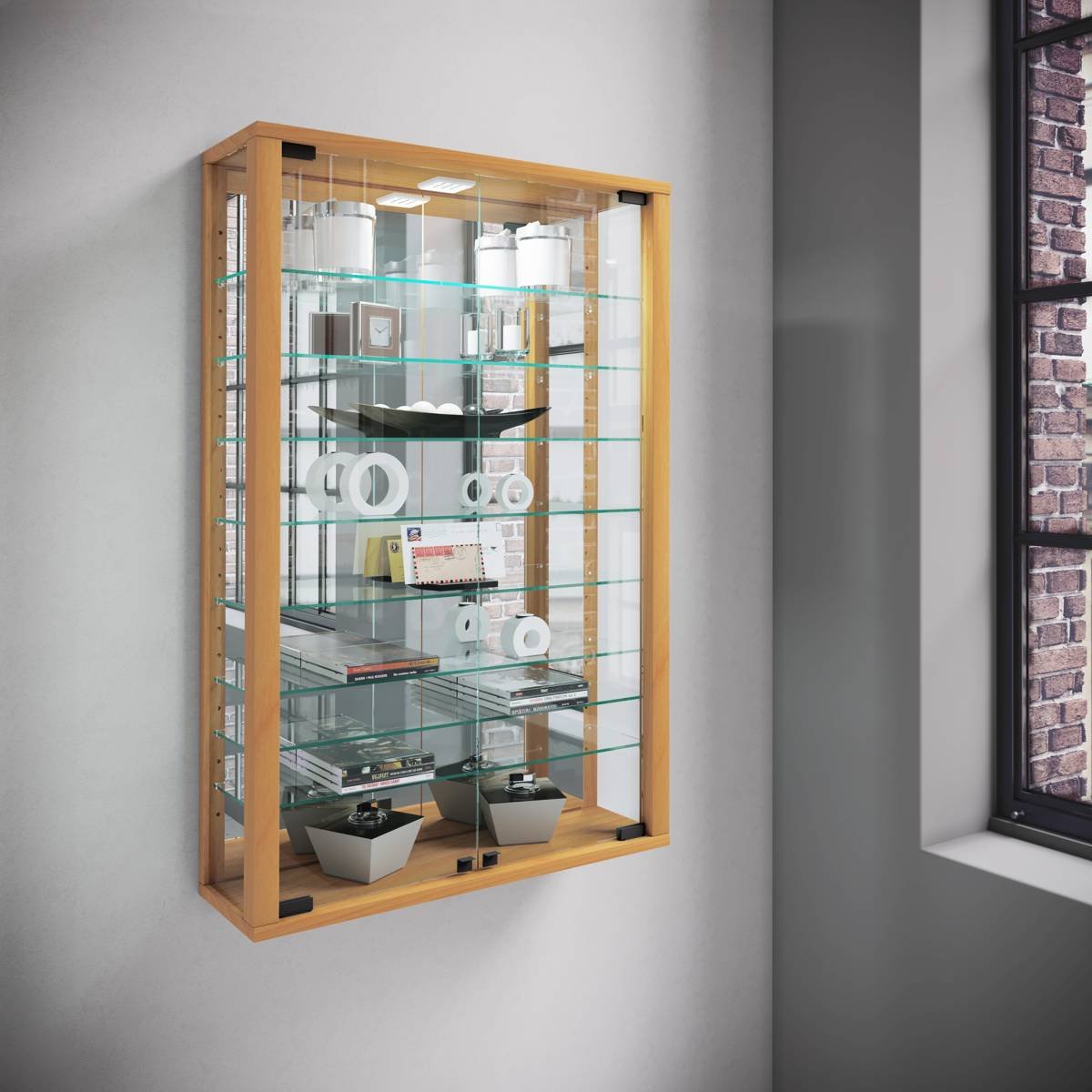 Nástěnná vitrína Vitrosa Mini se zrcadlem včetně LED osvětlení, buk
