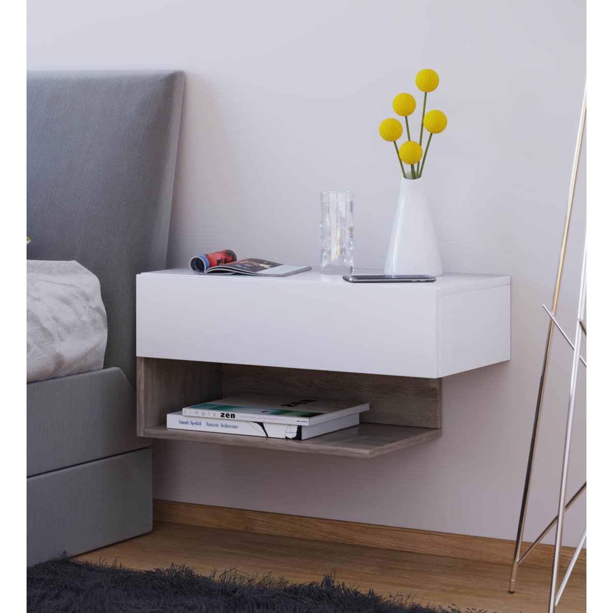 Nástěnný noční stolek Dormal Maxi, bílý a sonoma dub
