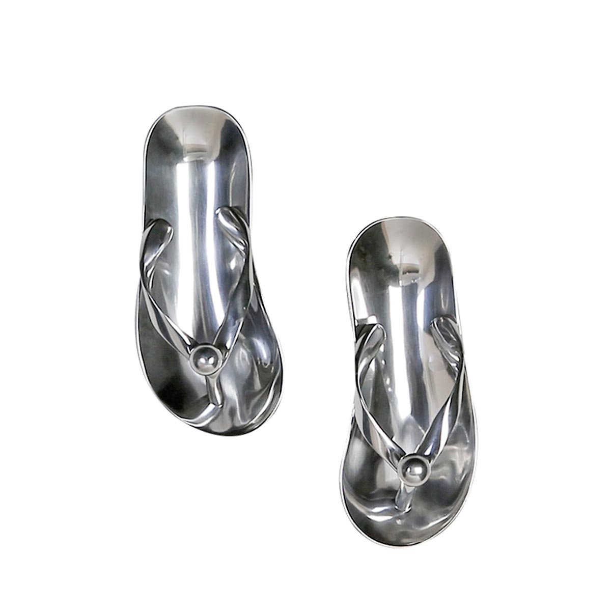 Tento originální věšák na oblečení je nejen praktický, ale i velmi dekorativní doplněk předsíně, koupelny či ložnice. Kovový lesklý věšák je navržen ve tvaru oblíbené plážové obuvi – žabky.Doplňkové parametry