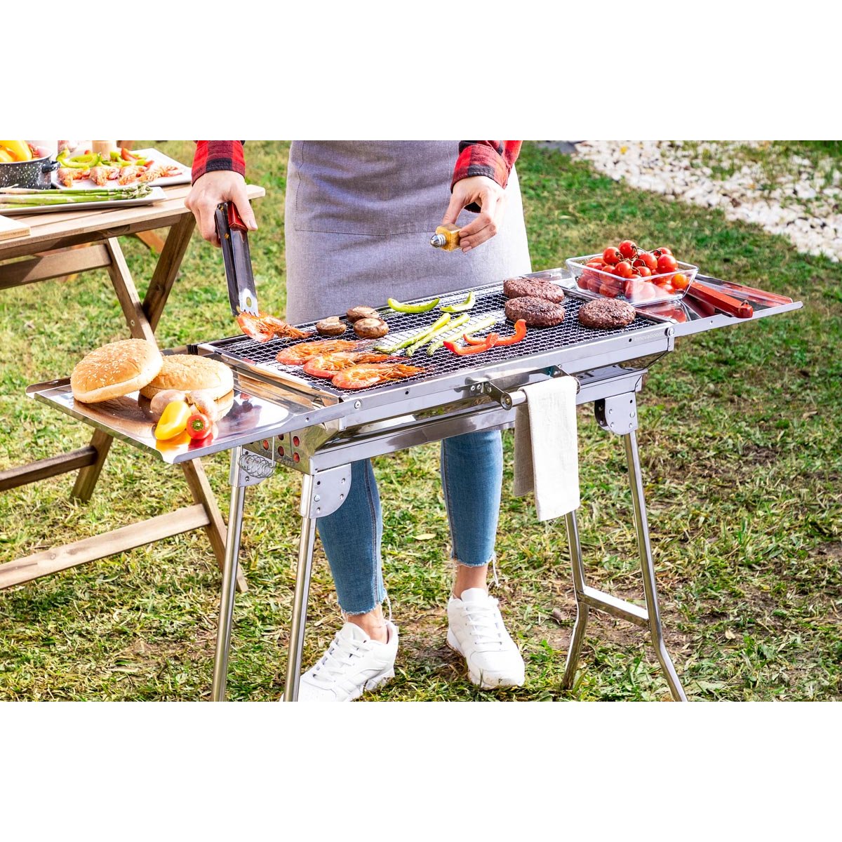 Tento elegantní a praktický gril z nerezové oceli je ideální pro přípravu lahodných pokrmů na zahradě, kempování nebo pikniku s přáteli a rodinou.