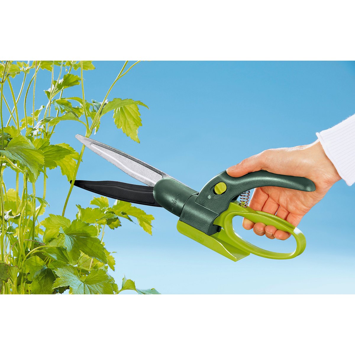S těmito speciálními nůžkami ostříháte okraje trávy absolutně perfektně a současně zvlášť pohodlně. Čepele se dají o 360°otáčet, zcela podle libosti! Tak budete mít vždy ideální úhel na stříhání, bez toho, že si ukroutíte ruku. Čepele mají nepřilnavý povrch.