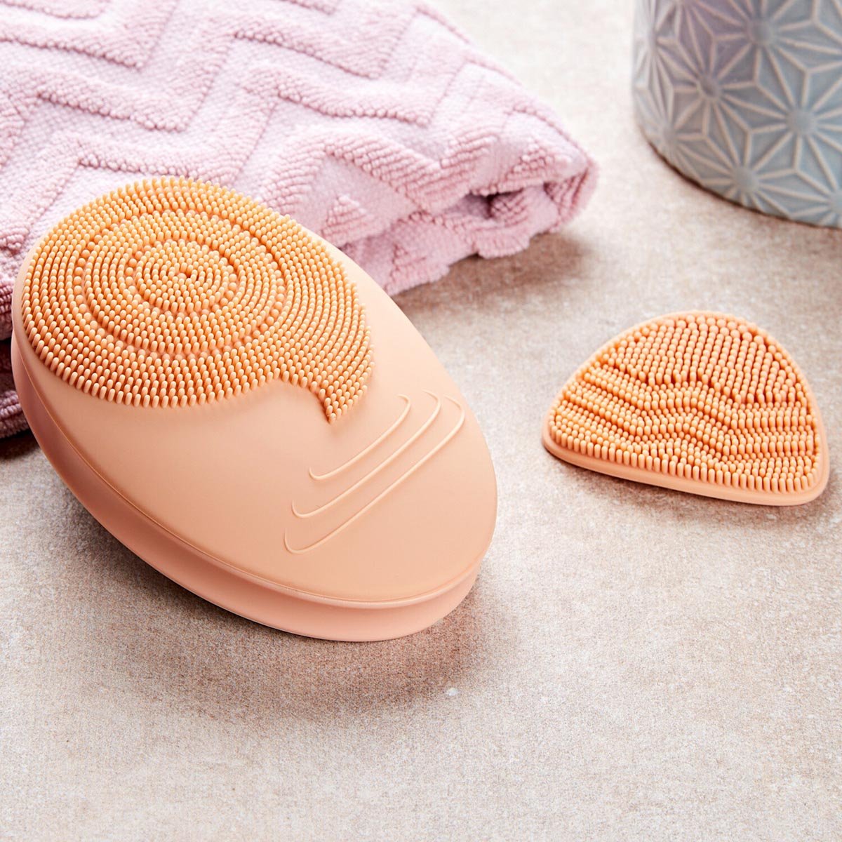 Od hloubkového čištění pórů až po relaxační masáž, vibrace na baterie umožňují kompletní péči o obličej. Pomocí ovládacího panelu a dvou silikonových nástavců šetrných k pokožce zvolte intenzitu – jemné, hloubkové čištění, péče proti stárnutí. Stres a únava zmizí. Obličejové svaly se mohou uvolnit a podpoří se svěží, hladká pleť. Pro každý typ pleti. Snadno se čistí. Provoz na 3 mikro baterie AAA, 1,5 V (nejsou součástí). 3 volitelné úrovně masáže. Revitalizuje. Včetně 2 silikonových nástavců. Objednejte si také: 8 mikro baterií AAA, 1,5 V 359490.