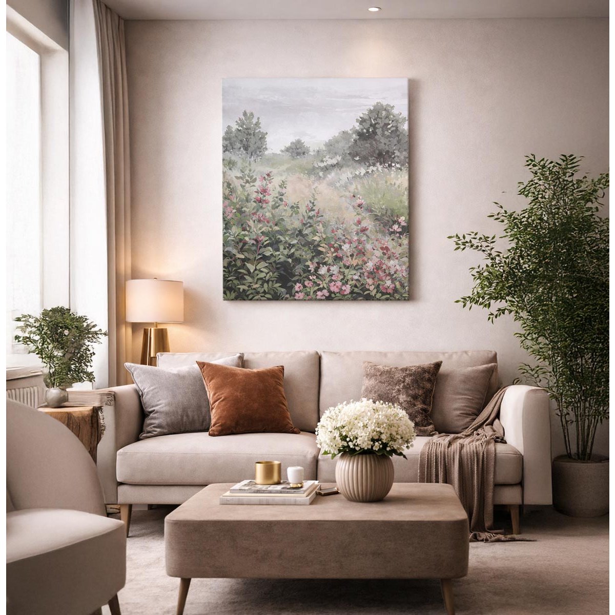 Jemný nástěnný obraz s motivem rozkvetlé louky vnese do interiéru klid, svěžest a harmonii přírody. Pastelové tóny zeleně, šedé a růžových květů působí lehce a vzdušně, díky čemuž se obraz snadno kombinuje s moderním i přírodním stylem bydlení. Skvěle se hodí jako obraz do obýváku, ložnice i pracovny, kde navodí příjemnou a uklidňující atmosféru. Obraz na plátně je natažen na pevný rám.