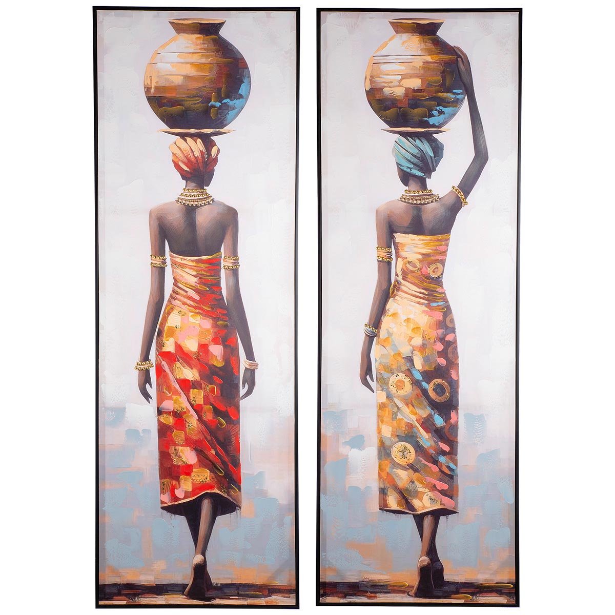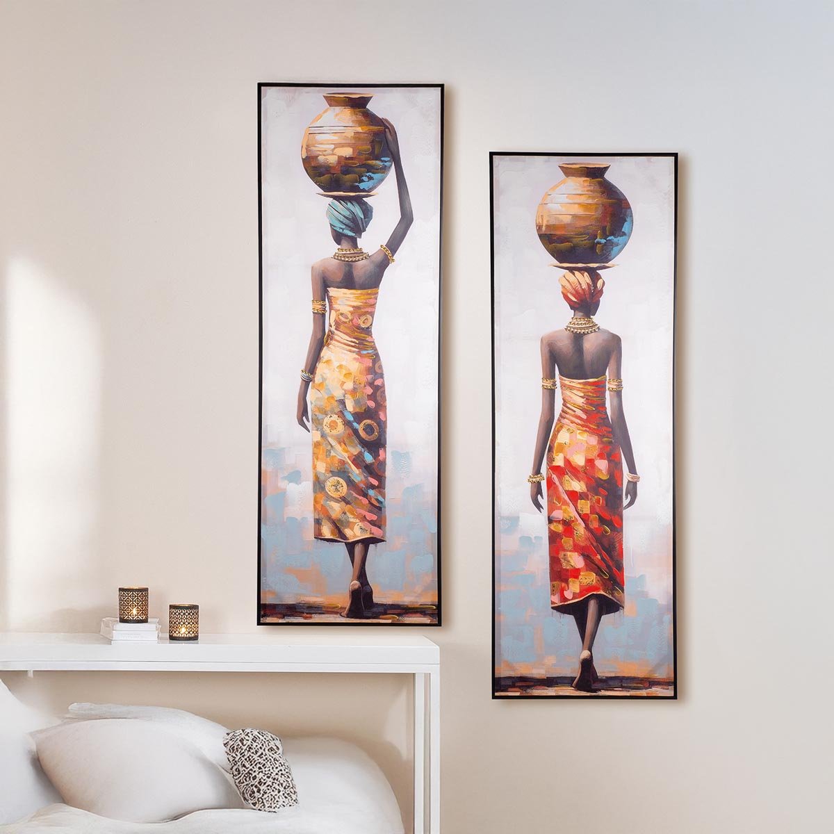 Vneste do svého interiéru stylovou eleganci a kulturní výraz s 2dílným setem nástěnných obrazů Makeda. Každý obraz zobrazuje výrazný ženský motiv inspirovaný africkou kulturou a etno stylem, díky čemuž se skvěle hodí jako dominantní obraz do obýváku, ložnice nebo moderního interiéru.