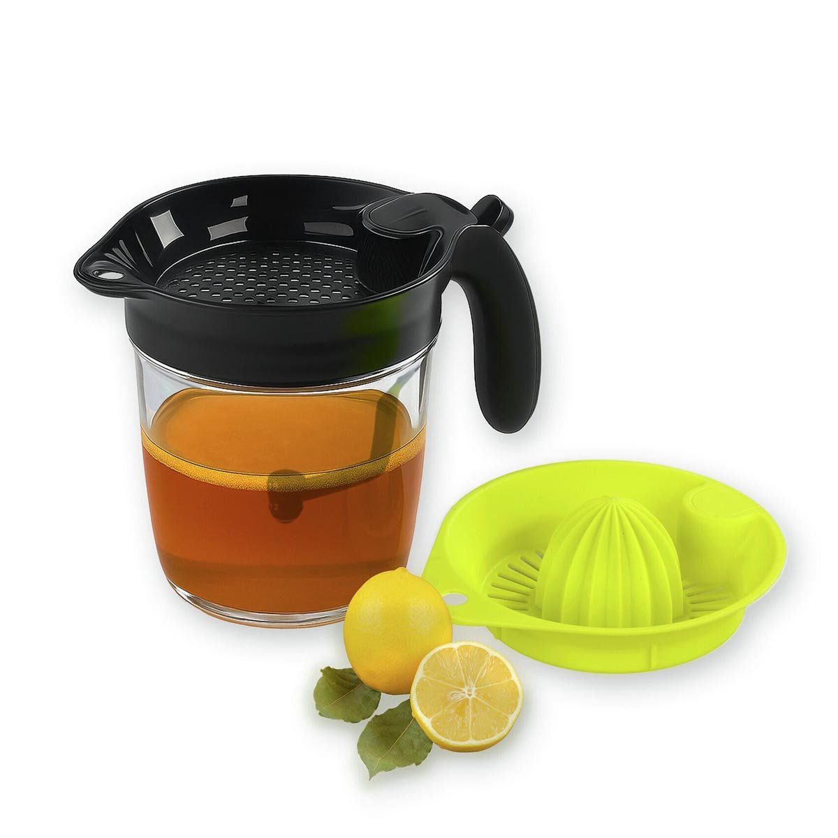 Multifunkční 3v1 kuchyňský pomocník je ideální volbou pro každého, kdo chce vařit zdravě, pohodlně a bez zbytečného nepořádku. Spojuje v sobě odlučovač tuku, ruční odšťavňovač a odměrku v jednom praktickém zařízení.