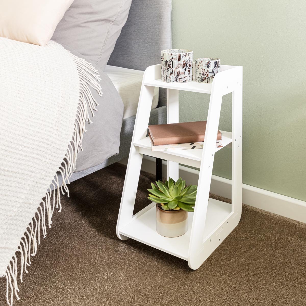 Elegantní noční stolek nabízí chytré řešení pro přehledné uložení vašich věcí. Tři různě široké odkládací plochy poskytují dostatek místa na knihu, telefon, kosmetiku nebo dekorace.