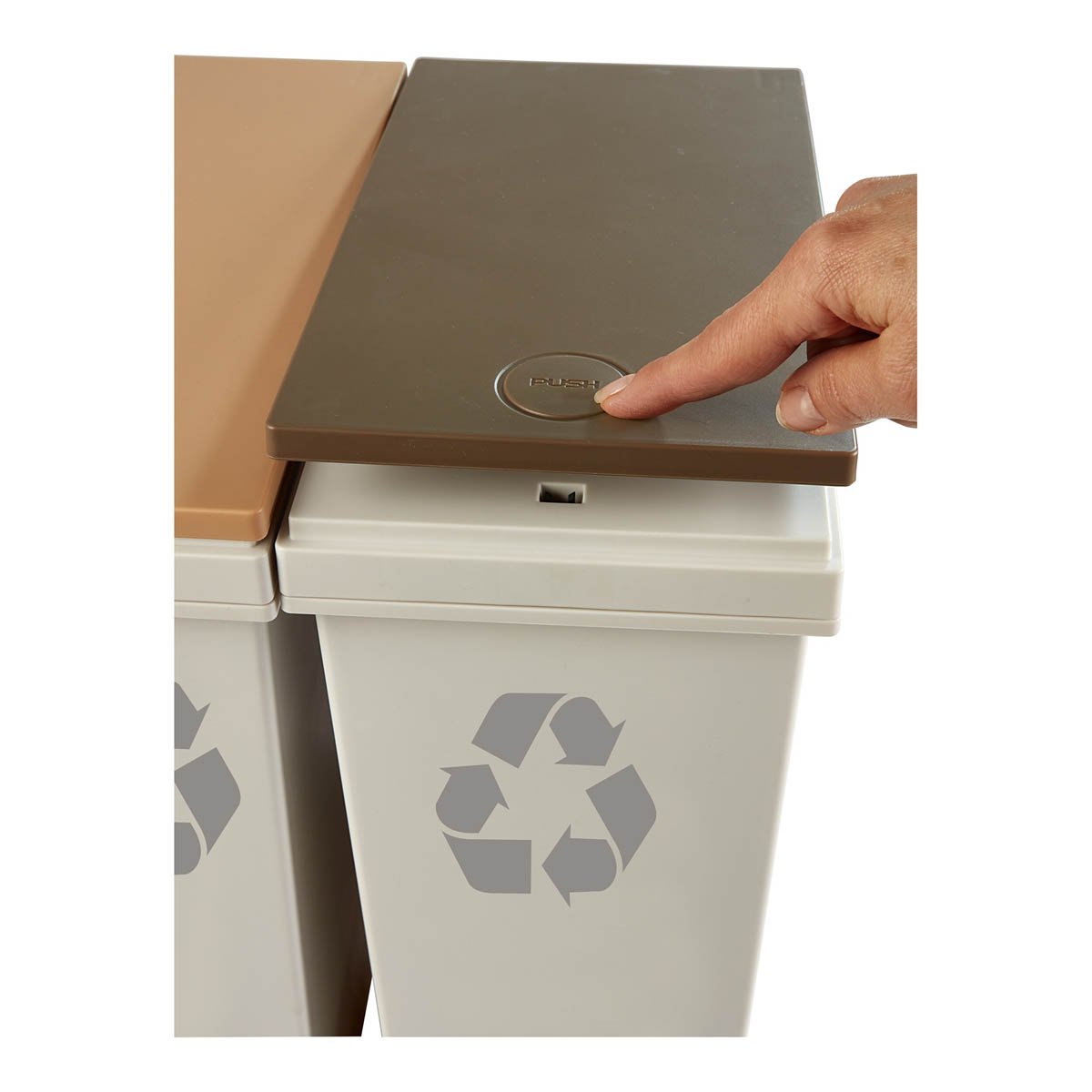 Tři samostatné koše (každý 20 l) s pachotěsnými víky a barevným označením usnadňují ekologické třídění.