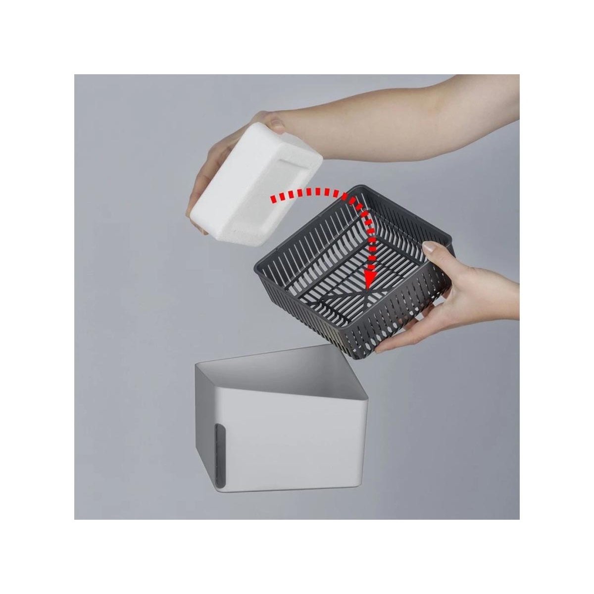 Dodává se včetně 500 g náplně chloridu vápenatého, která absorbuje přebytečnou vlhkost ze vzduchu a ta následně stéká do spodní nádržky.