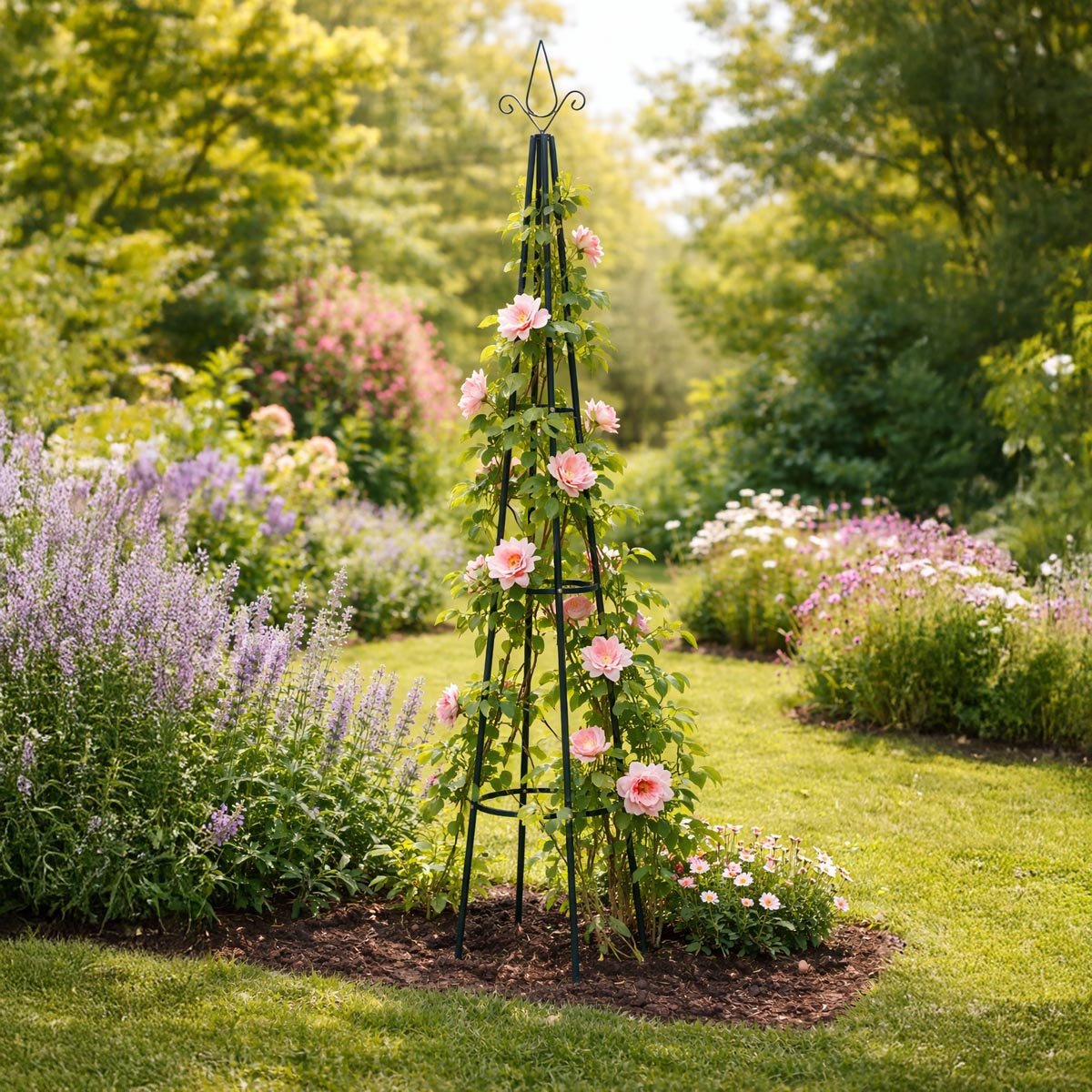 Stabilní opora podporuje růst a dává popínavým rostlinám tvar a výšku. Robustní konstrukce v zelené barvě je dostatečně pevná, aby unesla i ty nejmohutnější popínavé rostliny. Je ideální pro popínavé růže, trubač či plamének.