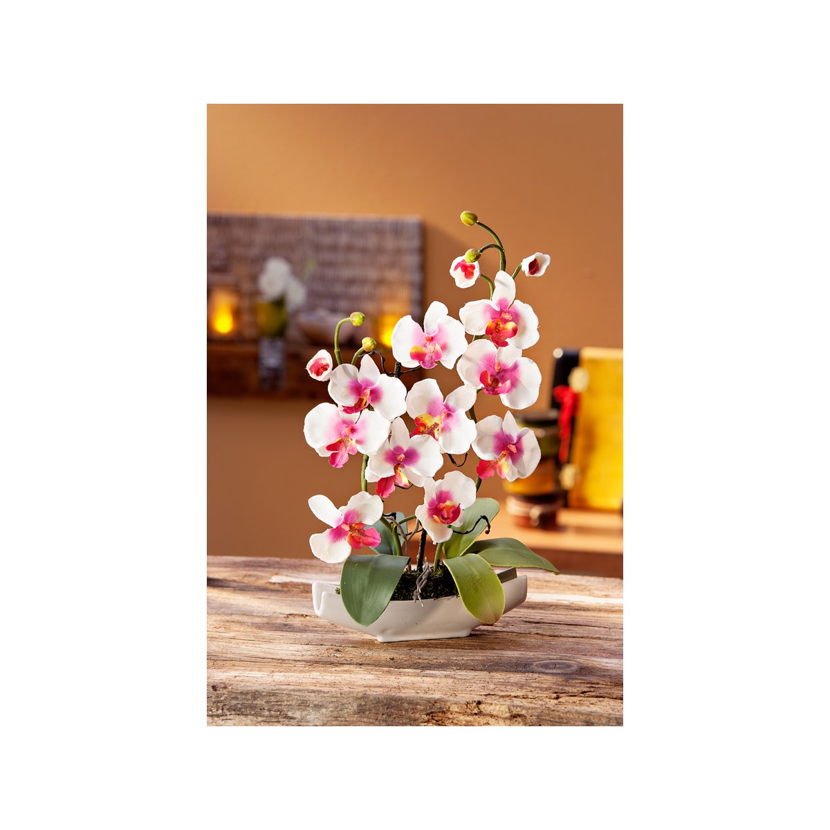 V bílo-růžové barvě, stylově naaranžované na bílé keramické misce ve tvaru lodičky