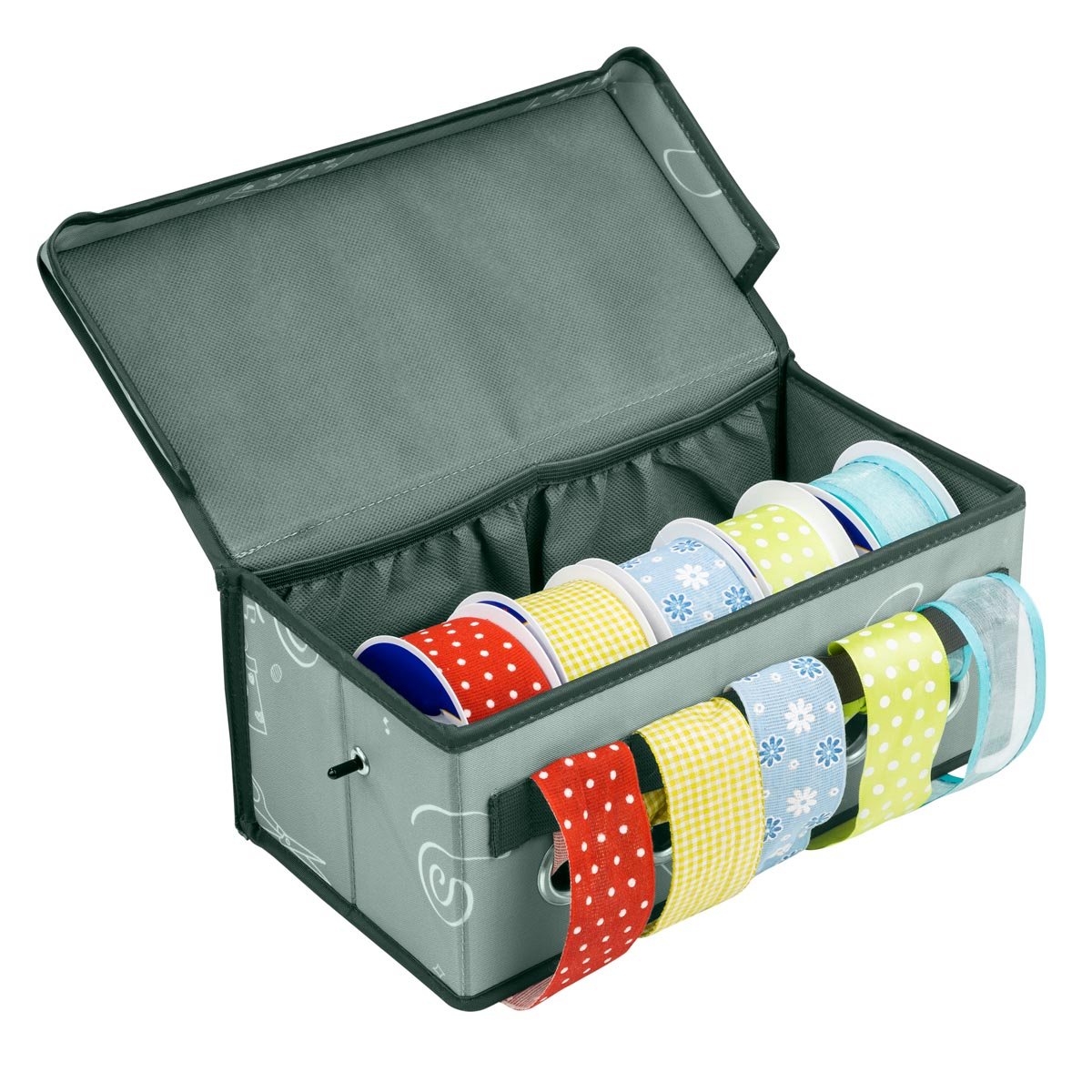 Tento úložný organizér na dárkové stuhy je praktickým pomocníkem pro balení dárků doma i v kreativní dílně. Pomůže vám přehledně uspořádat stuhy, pásky a další balicí potřeby, aby byly vždy po ruce a nezamotávaly se. Díky promyšlenému vnitřnímu uspořádání udržíte pořádek i v menších doplňcích používaných při balení.
