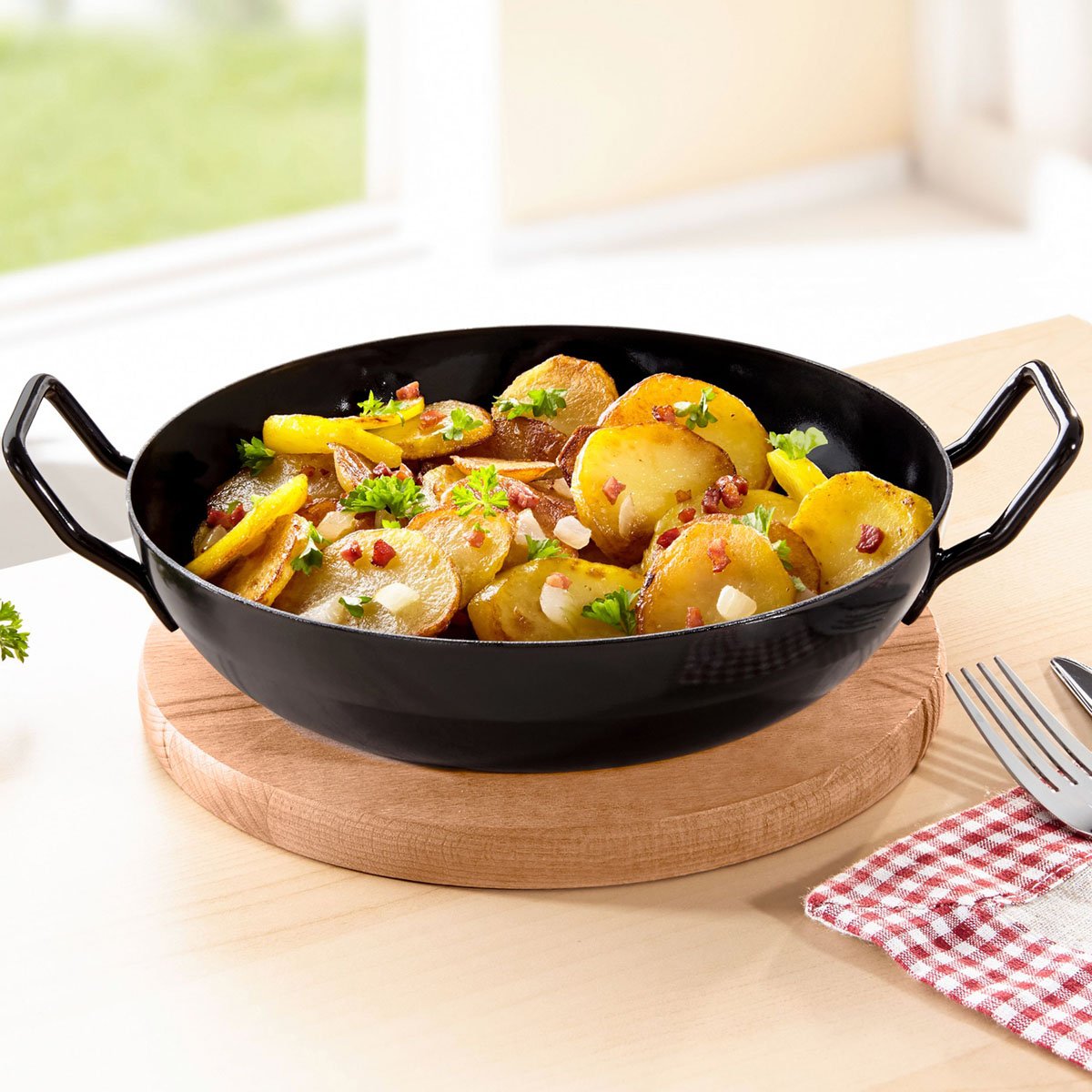Kuchařské pochoutky můžete nyní připravit a podávat přímo z pánve! Stačí použít dřevěné prkénko, které je součástí. Jídlo bude vypadat skvěle!