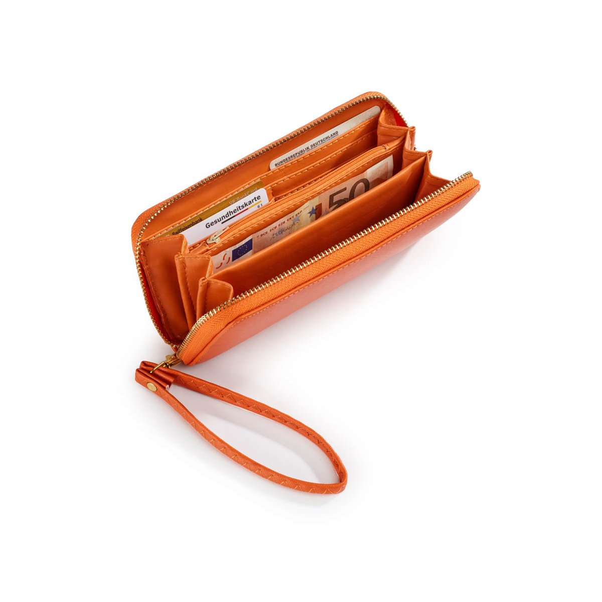 Díky poutku máte více volnosti a bezpečí. Peněženku máte volně zavěšenou kolem zápěstí. Uvnitř je několik přihrádek a zavírá se na zip.