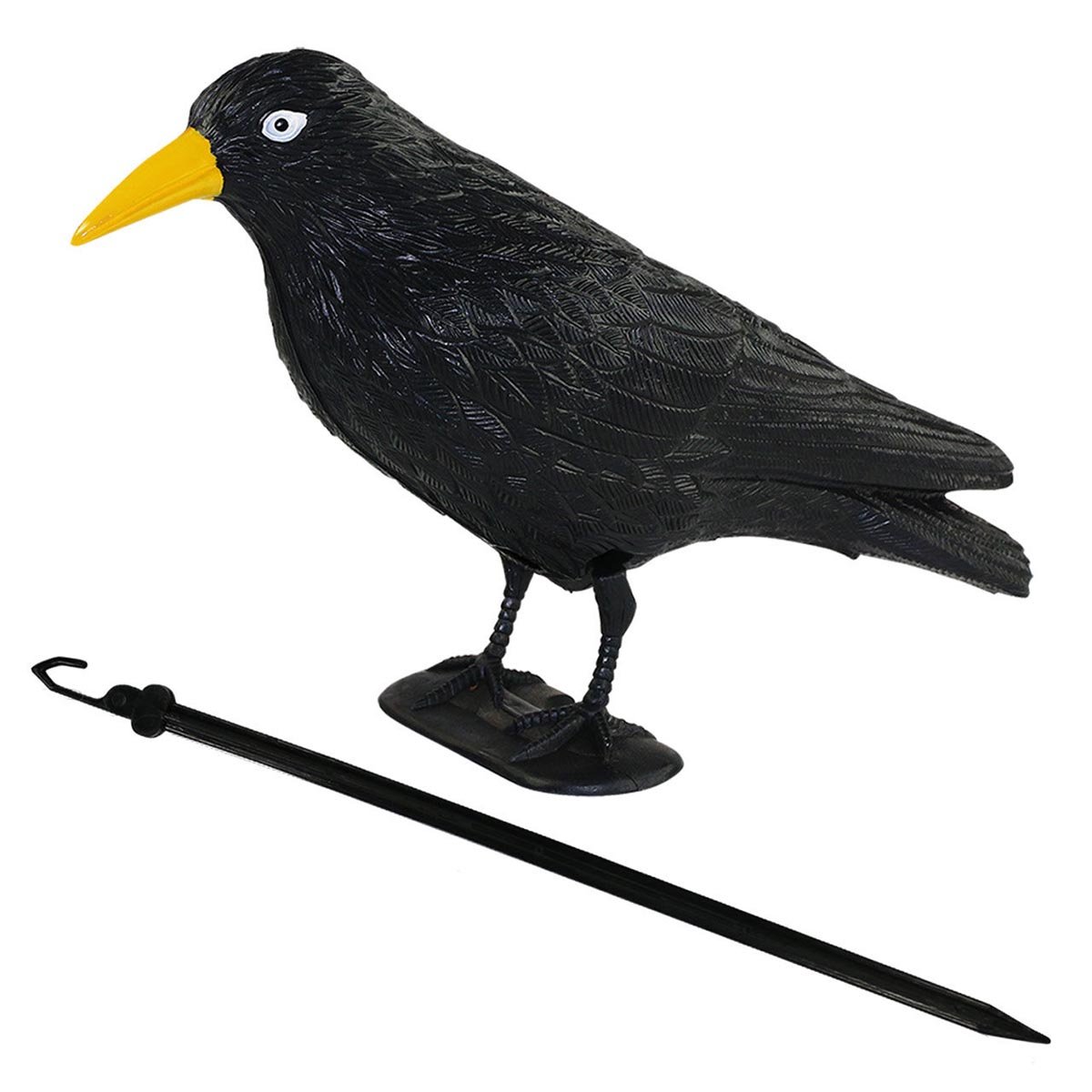 Maketa je vyrobena z odolného plastu a svým vzhledem věrně napodobuje havrana, který je pro menší ptáky přirozeným predátorem. Díky tomu funguje jako jednoduchý a ekologický odpuzovač, který pomáhá zabránit poškozování rostlin, úrody nebo znečišťování balkonů.