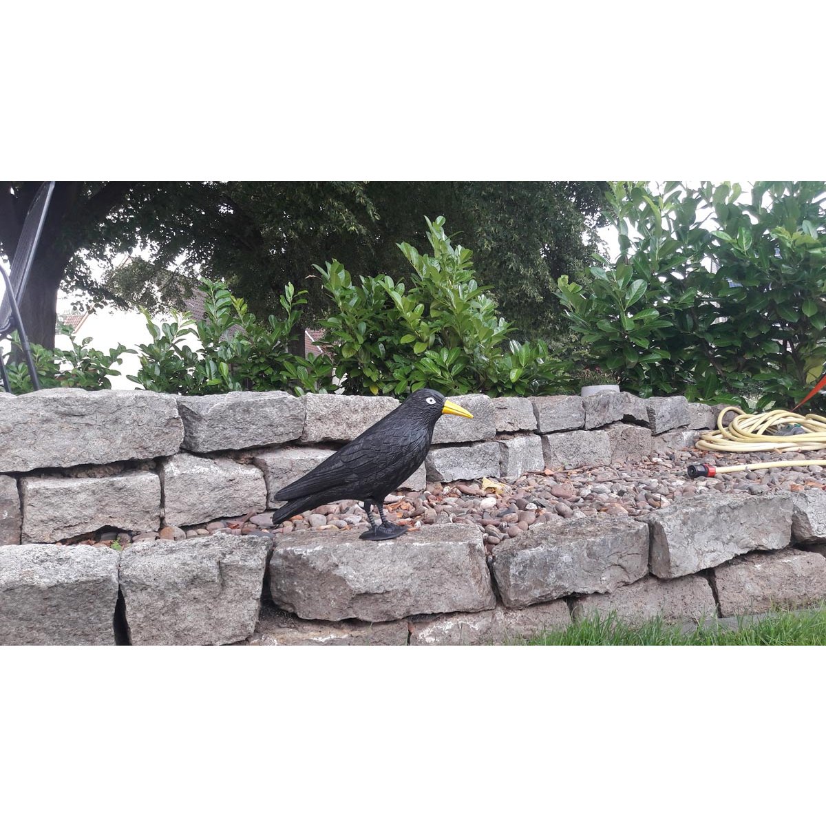 Instalace je velmi snadná – maketu stačí umístit na viditelné místo na zahradě, na balkon nebo k záhonům, kde pomůže odradit ptáky od přistávání.