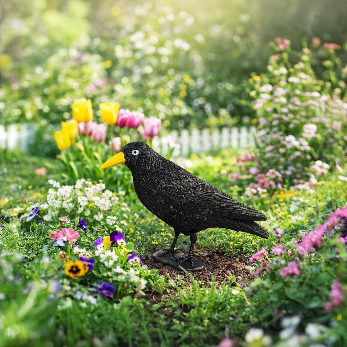 Praktický odpuzovač ptáků ve tvaru havrana pomáhá chránit zahradu, záhony i balkony před nežádoucími návštěvníky. Realisticky zpracovaná maketa působí přirozeně a slouží jako účinná ochrana záhonů před holuby a drobnými ptáky.