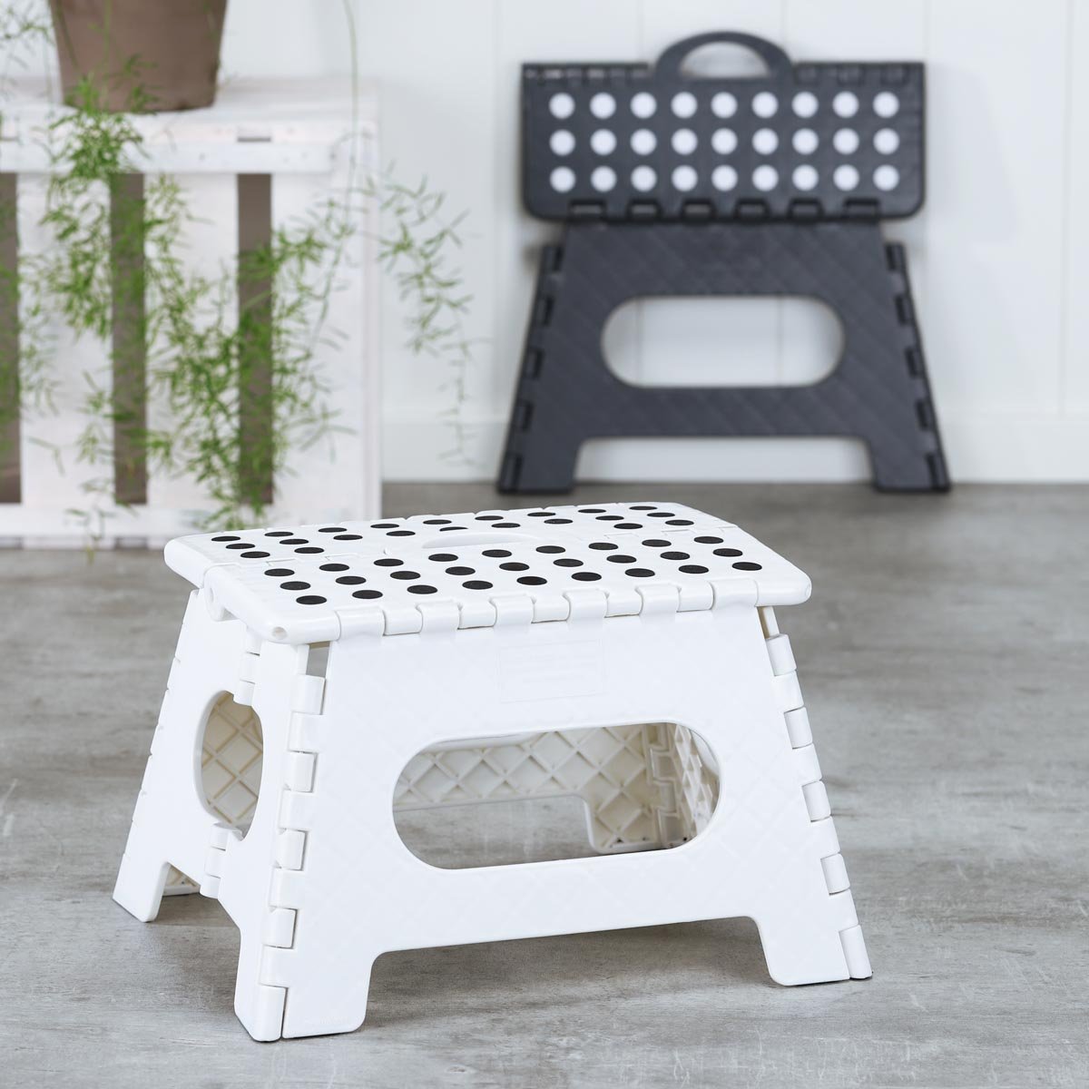 S praktickou šedou skládací stoličkou s bílými puntíky budete mít vše rychle nadosah.