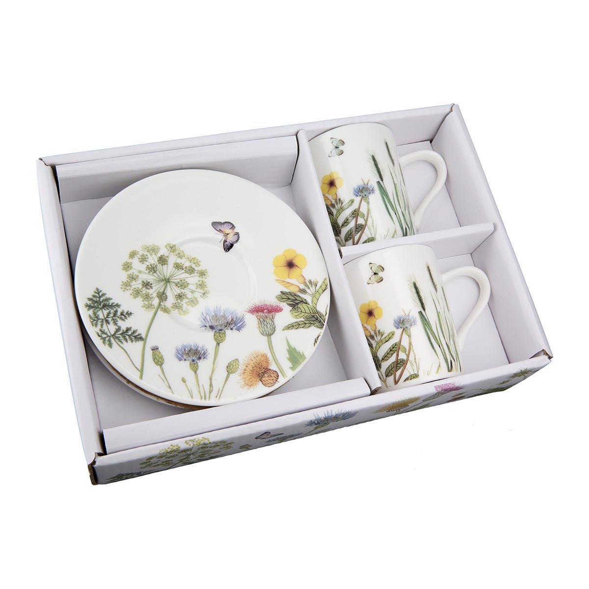 Elegantní sada porcelánových šálků s podšálky Divoké květy vnese do vašeho stolování jemnost a romantický venkovský styl. Tyto stylové šálky na espresso jsou zdobené květinovým a motýlím motivem, který krásně doplní vaše porcelánové nádobí.