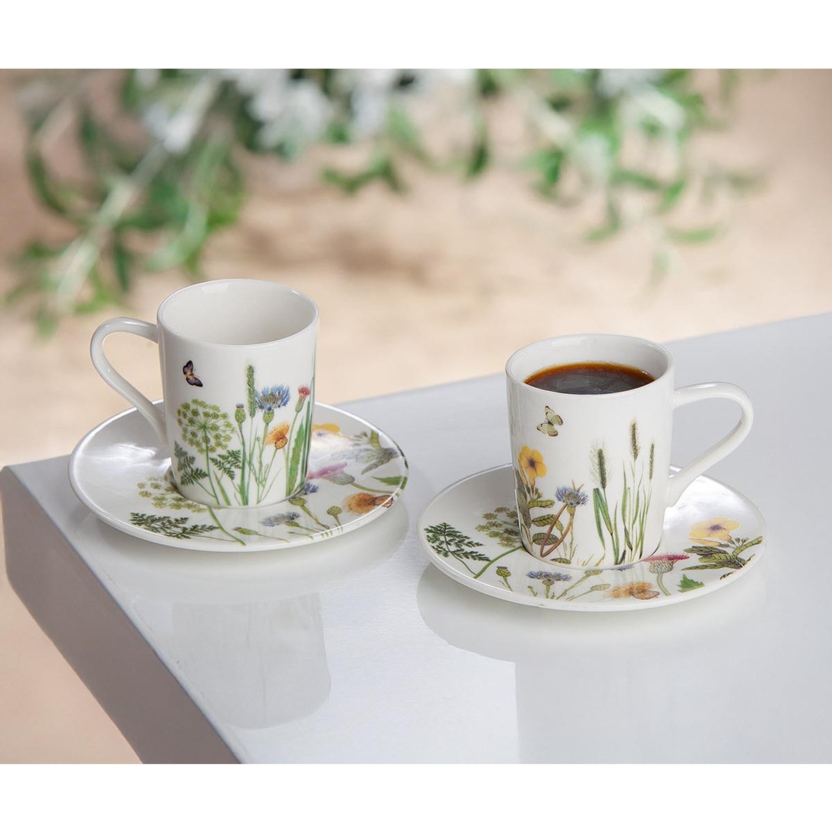 Porcelánové šálky na espresso s podšálky Divoké květy, sada 4 ks