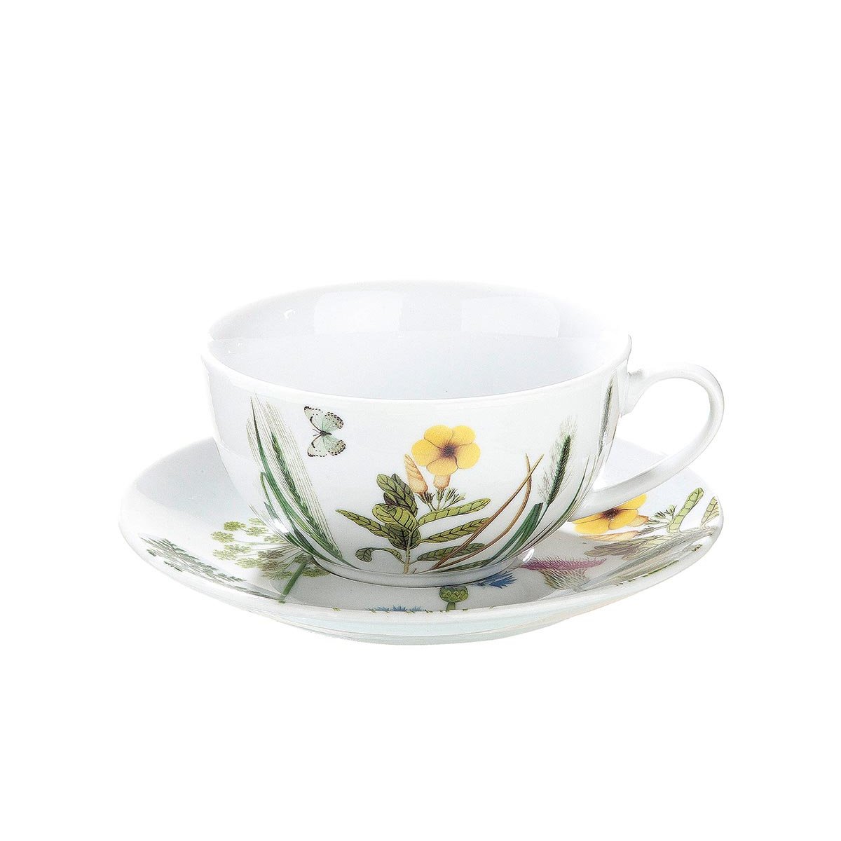 Vneste na svůj stůl lehkost, přírodní krásu a jemnou eleganci s touto porcelánovou sadou hrnků s talířky z kolekce Divoké květy. Jemný květinový dekor s motivem motýlů působí svěže a romanticky a krásně doplní vaše porcelánové nádobí i celkový styl interiéru.