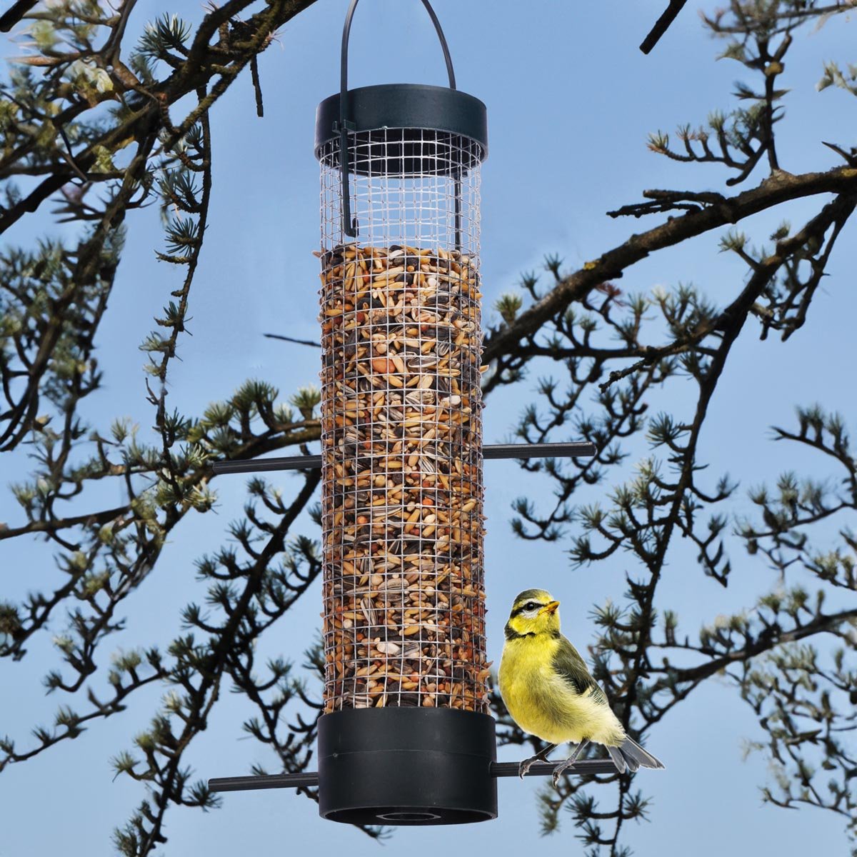 Naplňte jej dobrotami, pověste na strom a ptáci se jen pohrnou. Se dvěma bidélky, jedním dole a druhým uprostřed, poskytuje krmítko opeřeným hladovcům dokonalé pohodlí. Díky drátěnému pletivu se na krmítko mohou i zavěsit, takže mají k potravě přístup ze všech stran.