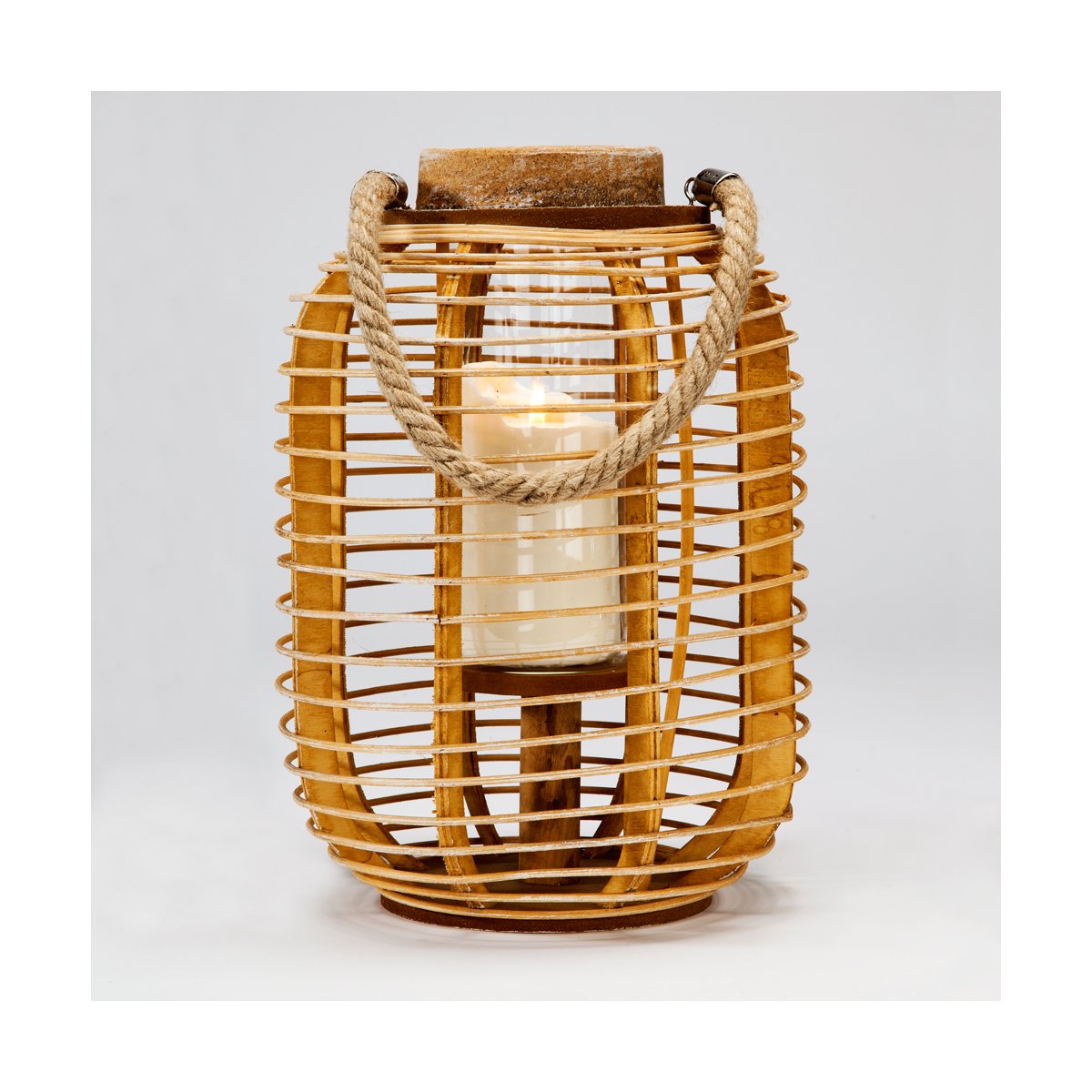 Ratan – moderní a nadčasová záležitost! Lampa vyrobená z tohoto oblíbeného materiálu, se skleněnou vložkou na svíčky, se hodí do jakéhokoliv interiéru.