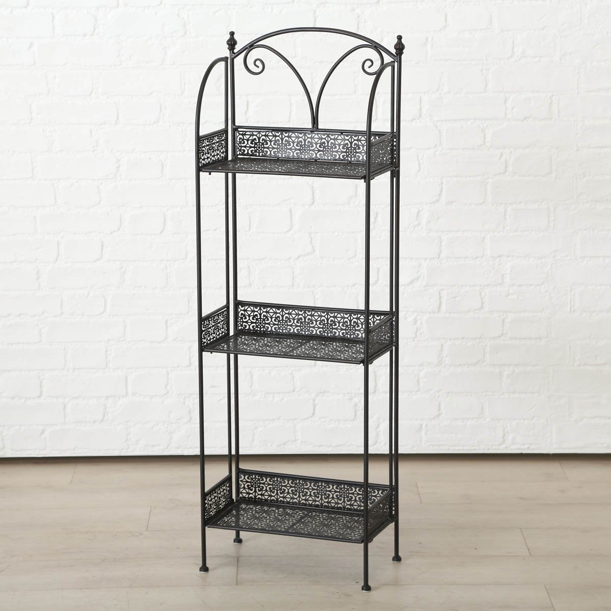 Tento stylový stojan na květiny v tmavě hnědém kovovém provedení působí dekorativně a zároveň šetří místo. Je ideální do obývacího pokoje, zimní zahrady, na terasu i balkon, kde vytvoří praktický i estetický prostor pro rostliny a dekorace. Kovová konstrukce zajišťuje stabilitu a dlouhou životnost.