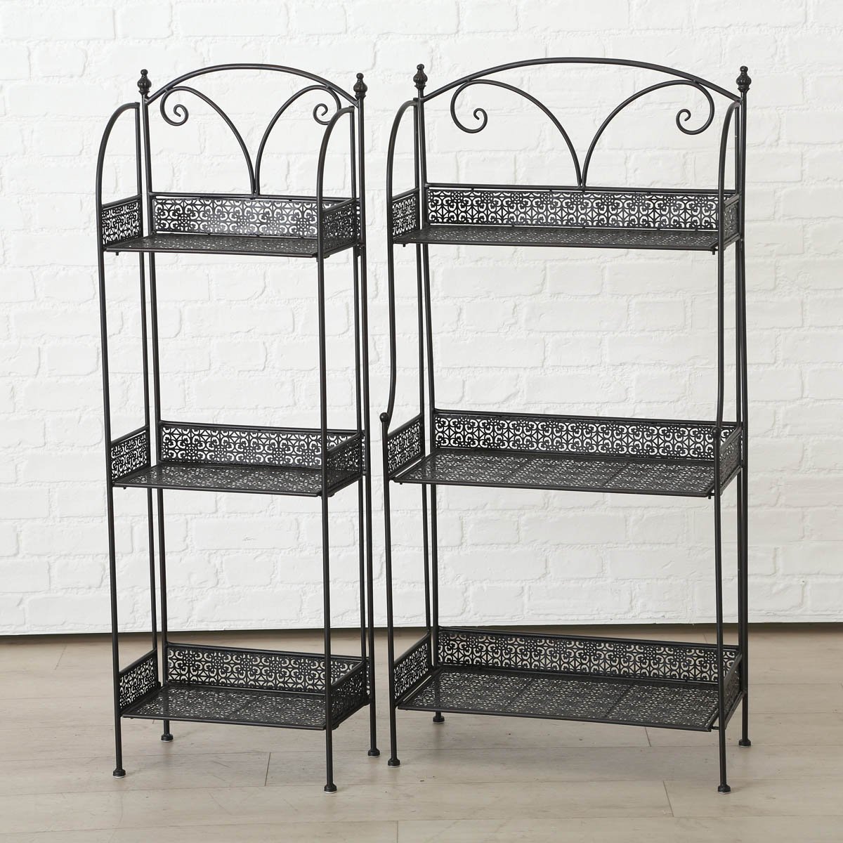 Kovový odkládací regál Broder je elegantním a praktickým doplňkem pro interiér i balkon, který pomůže s přehlednou organizací květin a dekorací. Dvouúrovňové schodové police umožňují vytvářet atraktivní aranžmá a vystavit rostliny, vázy i drobné doplňky.