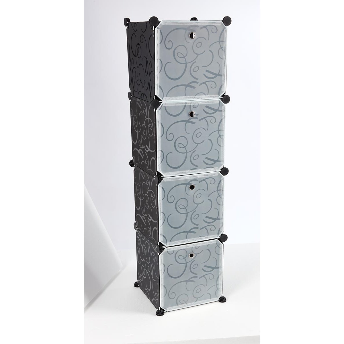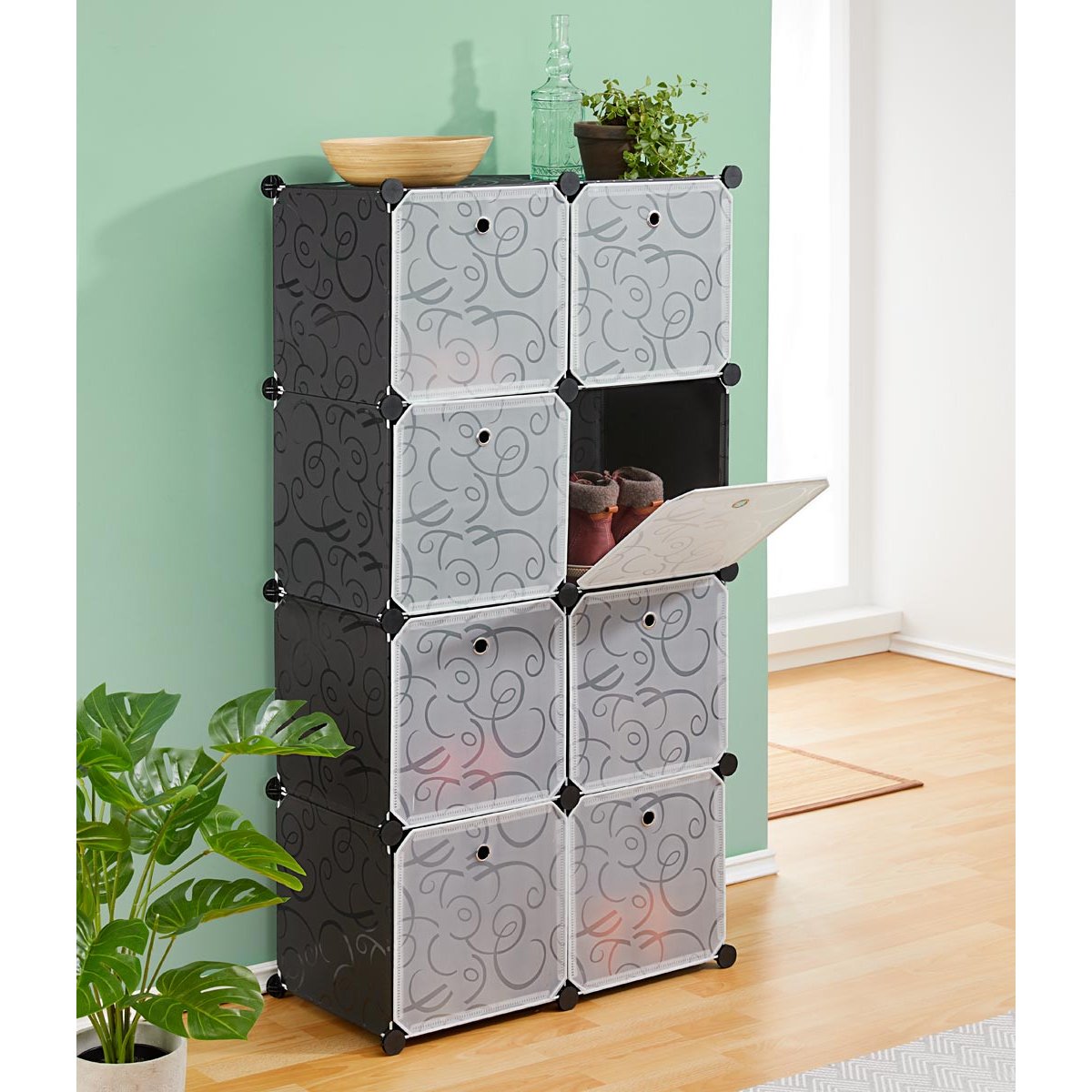 Součástí jsou také výklopná dvířka, která chrání uložené věci před prachem a zároveň dodávají celku elegantní vzhled. Systém je ideální nejen jako organizér do domácnosti, ale také jako praktický botník do předsíně.