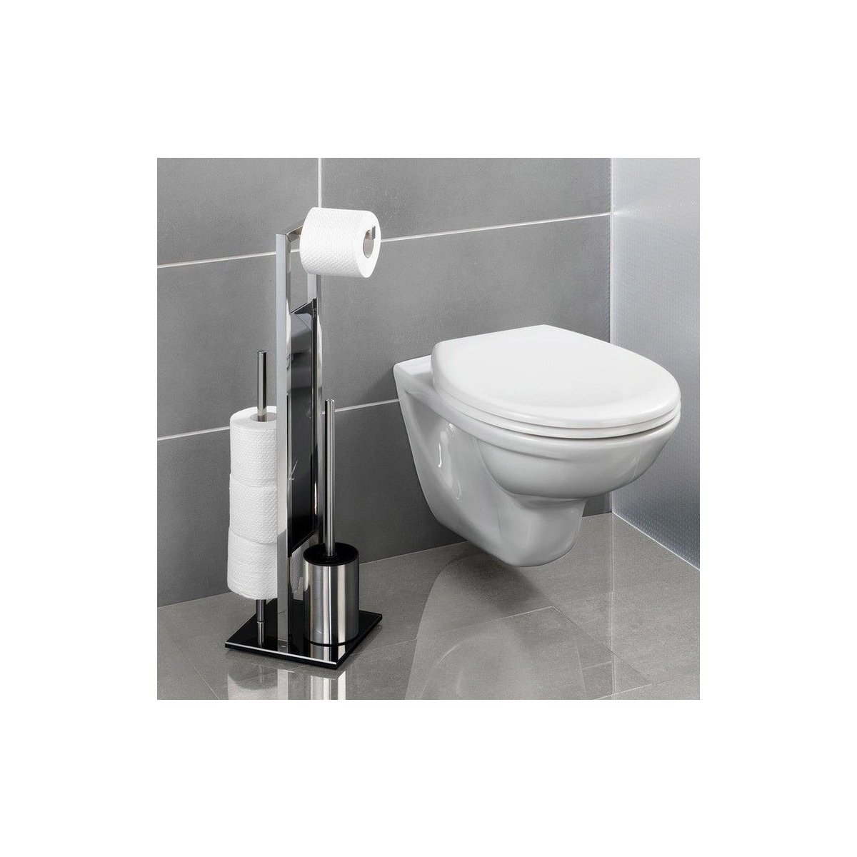 Praktický organizér se skládá z otevřeného držáku toaletního kartáče, držáku toaletního papíru pro okamžité vyjmutí a samostatného držáku náhradních rolí pro uložení až 3 dalších rolí.